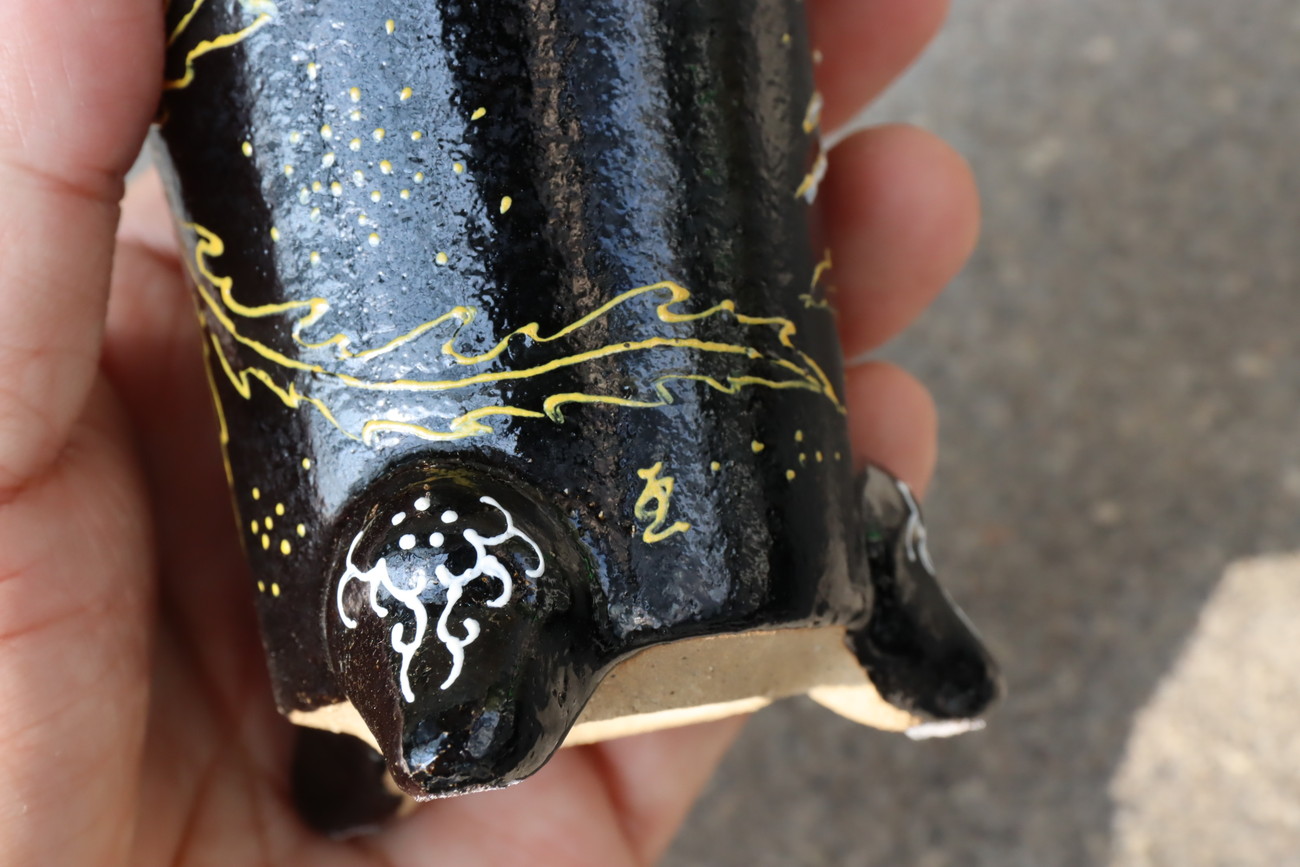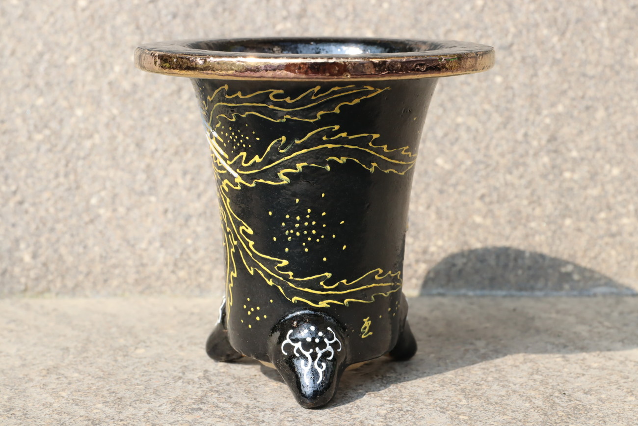 楽焼は天正年間(約400年前)に始まる日本独特の焼き物です。楽焼は《急熱急冷》という特殊な焼成方法をとります。急熱急冷だから、鉢に細かな 微細な穴ができ、通気を良くしています。おもと鉢作家 禅艸道 渡邉一水氏について