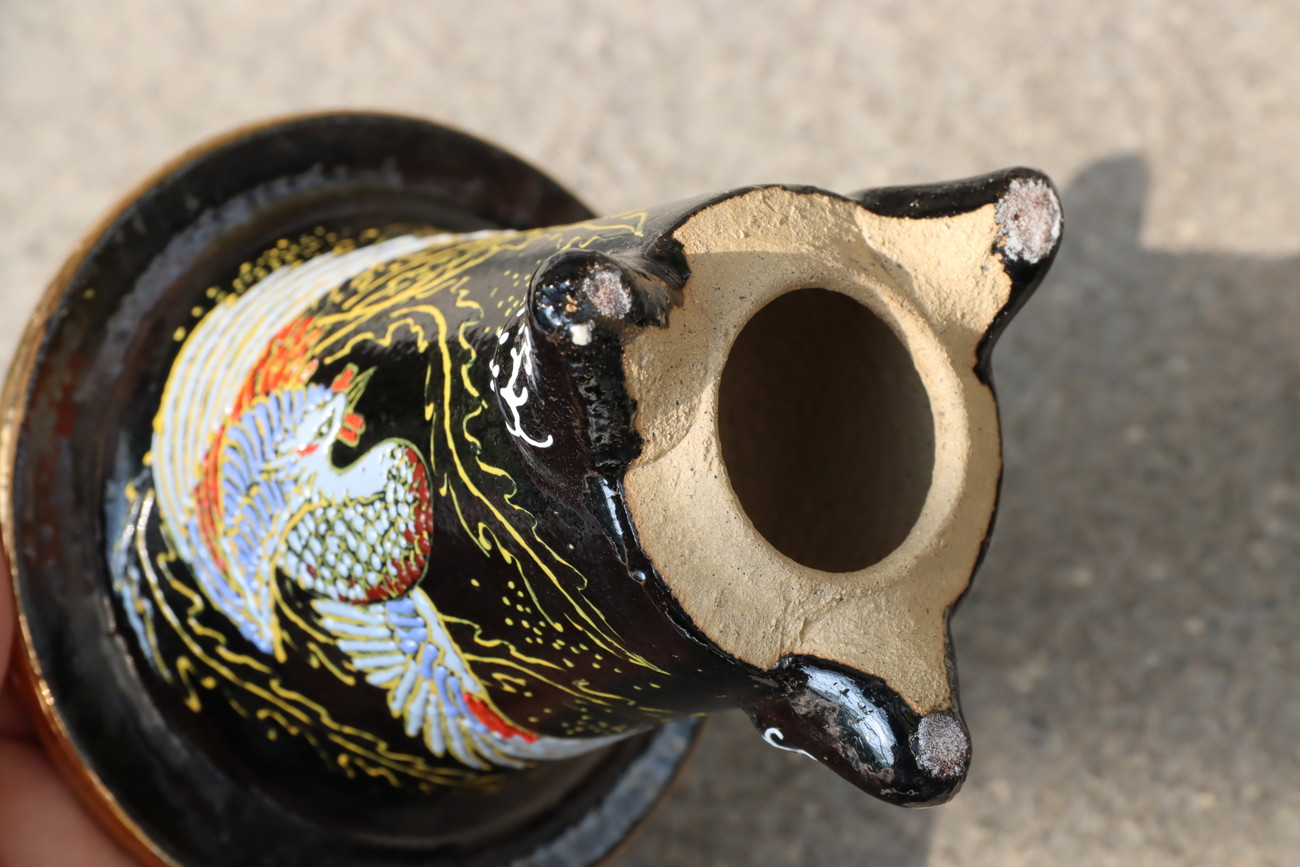 2290,鳳凰 外径約10.0cm 月香サイン 中古 窯きずあり