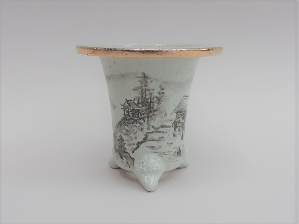 絵付 正三作万年青鉢 オモト鉢楽焼は天正年間(約400年前)に始まる日本独特の焼き物です。楽焼は《急熱急冷》という特殊な焼成方法をとります。急熱急冷だから、鉢に細かな 微細な穴ができ、通気を良くしています。おもと鉢 楽鉢 楽鉢の樂しみ