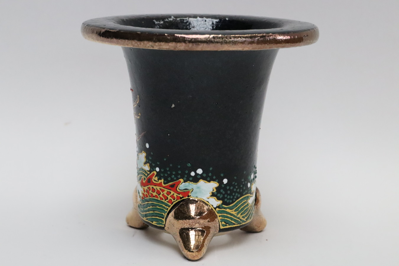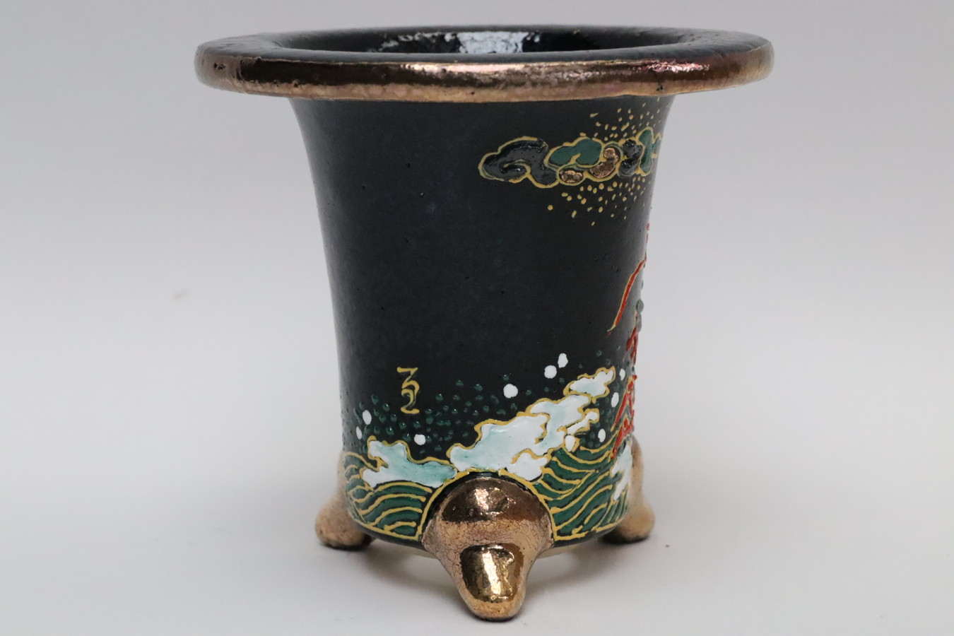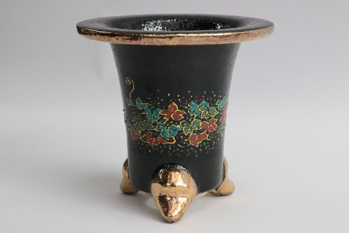 日本の伝統文化である楽焼きの鉢と、世界の園芸をつないでくれる鉢です。