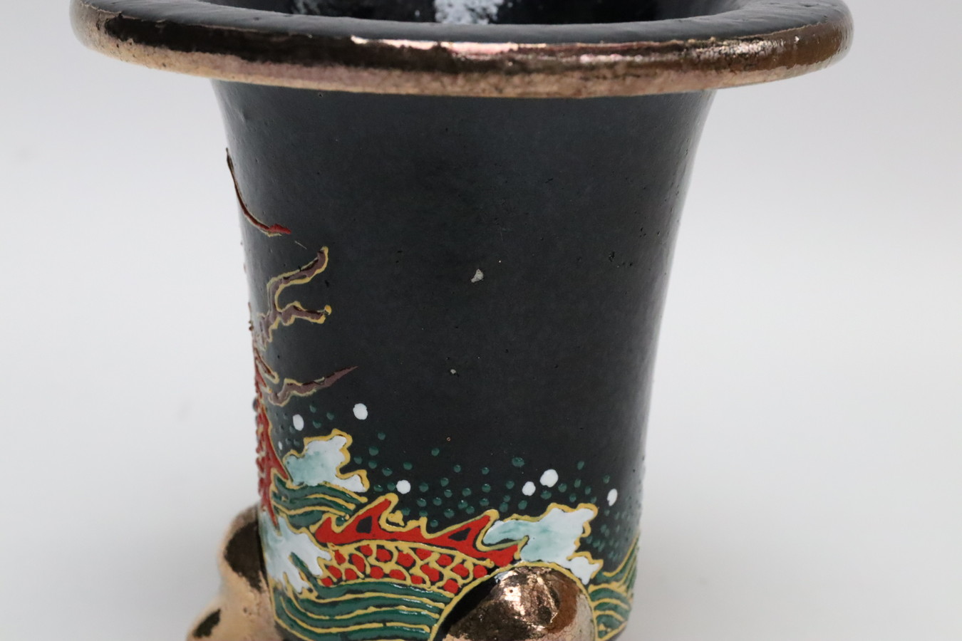 2407,赤龍 万年青楽鉢 外径約10.8cm 亘サイン 紅龍 赤龍の最高傑作か