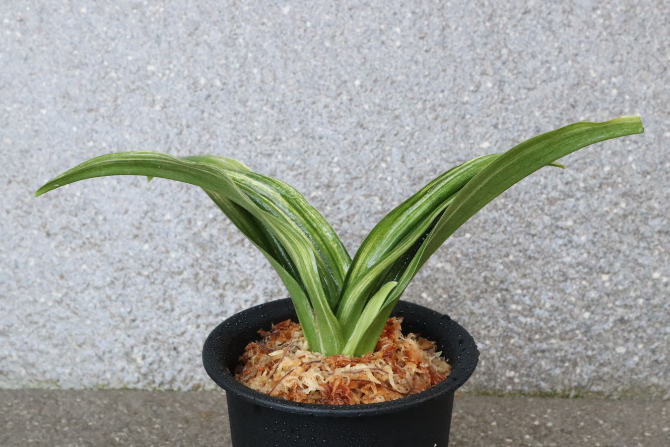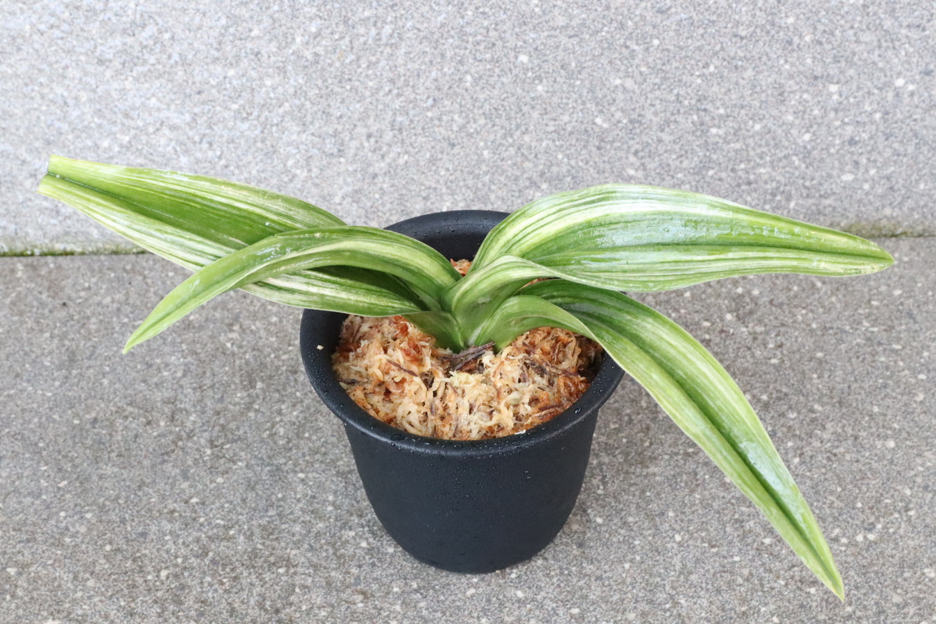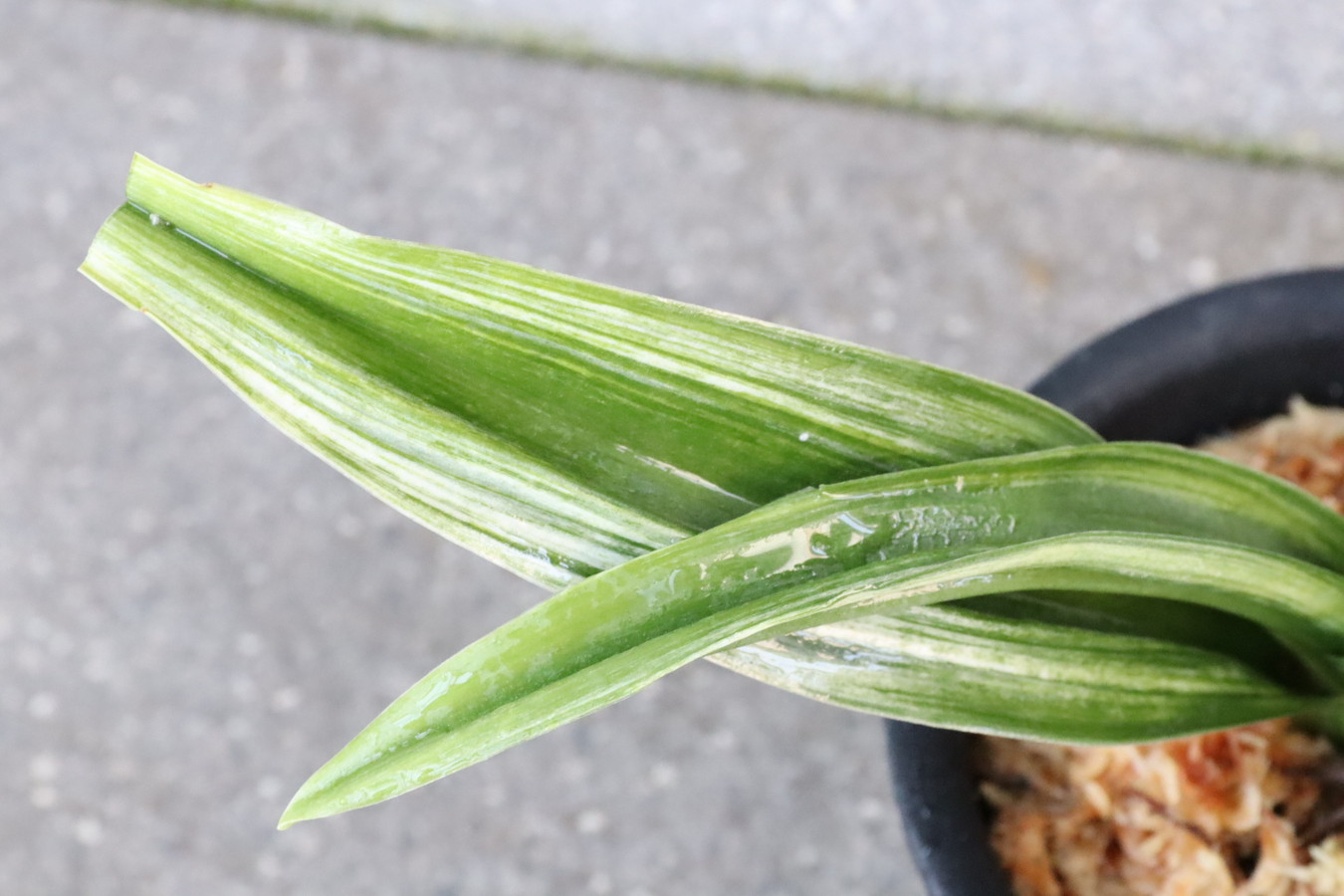 ふっくらした葉は肉厚で深い砂子覆輪を見せます。