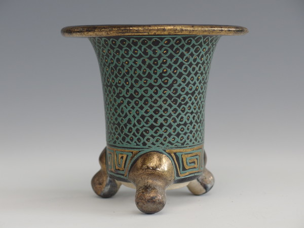 2076,太鼓胴 手島七々子 万年青鉢 外形約10.6cm