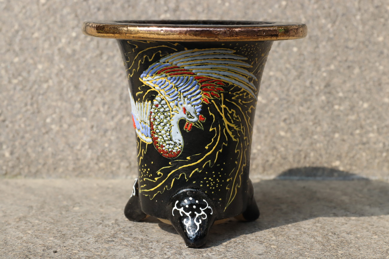 2167,鳳凰 萬年青楽鉢 外径約10.8cm 亘サイン 特【NHK使用鉢】中古 幸運を運ぶ瑞鳥【35000円→大特価!】