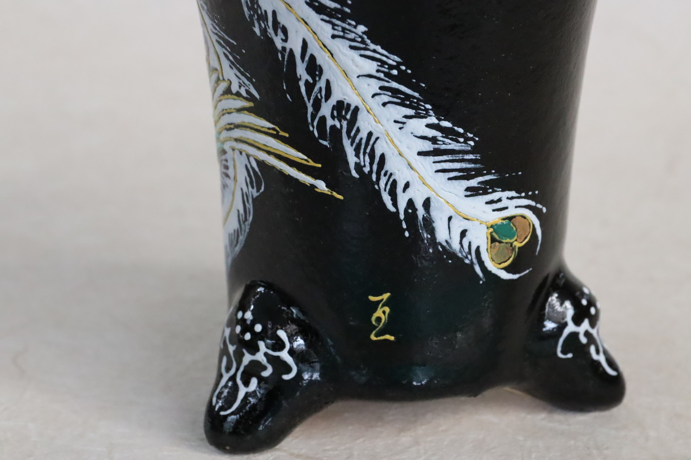 2055,鳳 外径約10.7cm 亘サイン 黒の艶よい【文月特価】