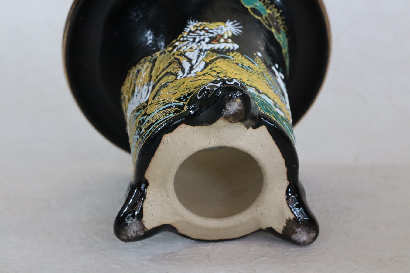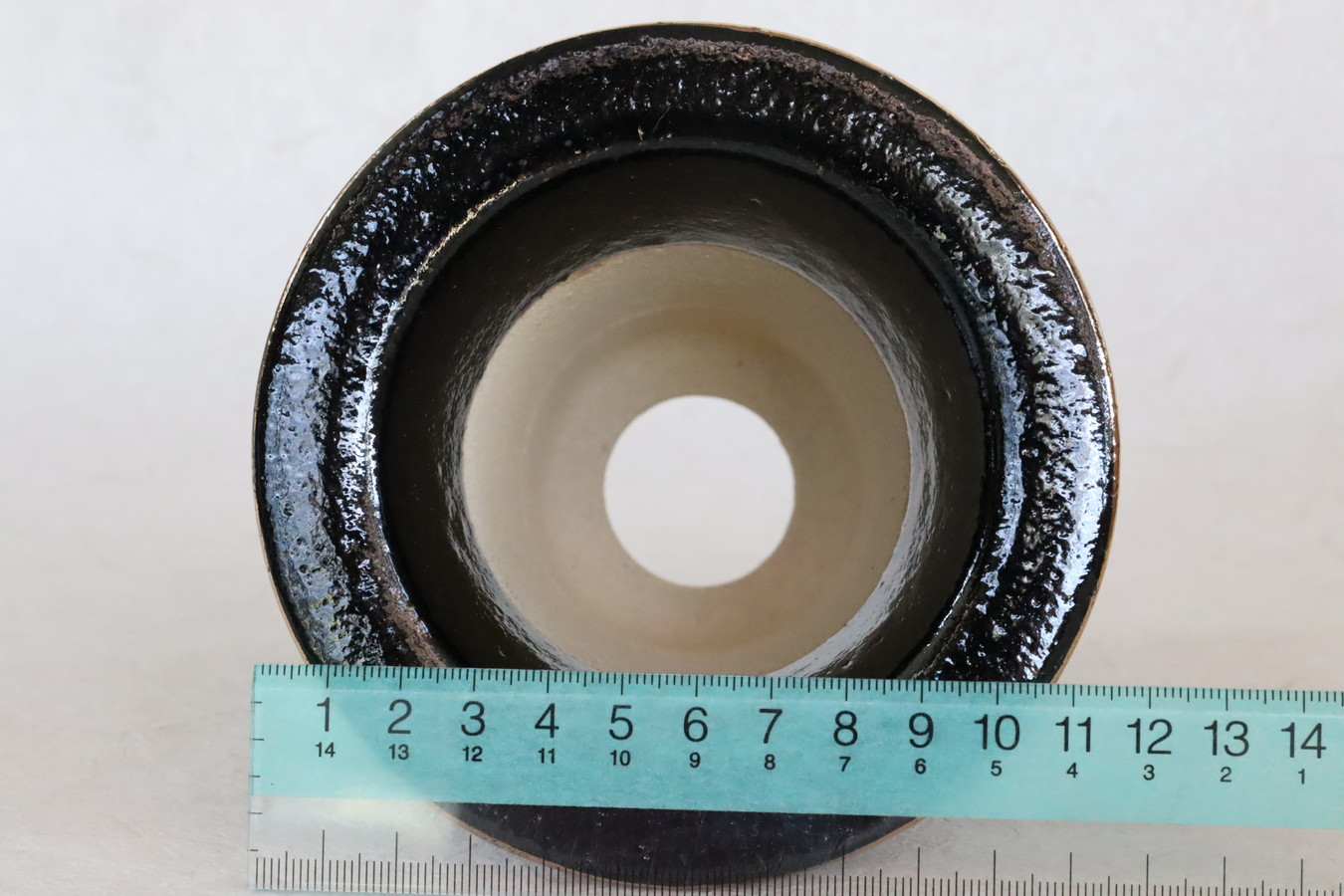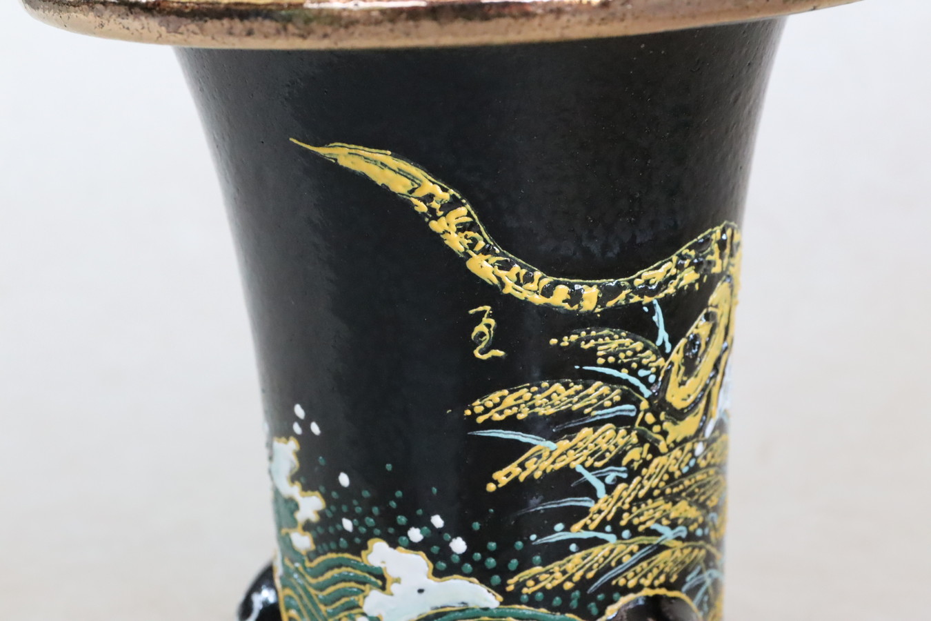 2024.7.8 希少性高い 一点物おもと鉢 万年青鉢 オモト鉢楽焼は天正年間(約400年前)に始まる日本独特の焼き物です。楽焼は《急熱急冷》という特殊な焼成方法をとります。急熱急冷だから、鉢に細かな 微細な穴ができ、通気を良くしています。万年青鉢 龍山後藤龍山 絵付師