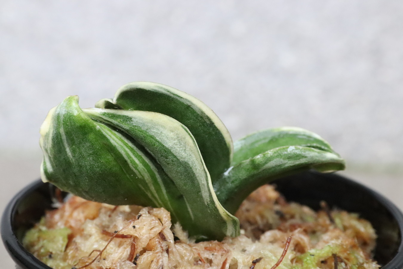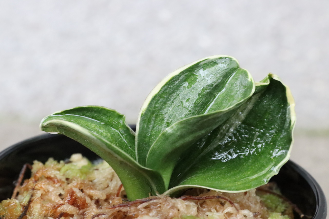 この品種の魅力は、「力和」でしか味わえない芸、丸葉の可愛らしい姿、その変化と、たくさんあります。杉山力蔵氏と岡田和吉氏が共有したため、『力和実生』と呼ばれ親しまれてました。昭和48年に待望の覆輪が完成。実生時代から常に人気で、三河地方では当時100万円以上の値が付いて、喧嘩するほどの奪い合いだったそうです(豊明園2代目談)。