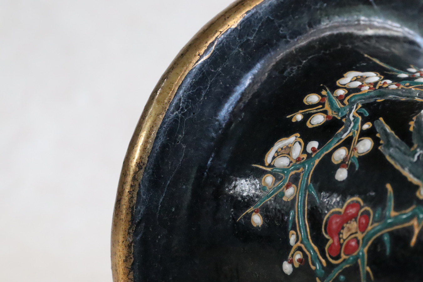 3044, 梅に鶯 外径約12.7cm 龍山サイン 中古