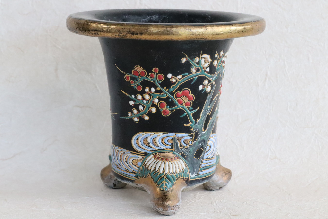 ●鉢は八の末広がりに通じ、鉢の底には水抜きの穴のあるのも、不浄を通し無病息災、見通し良く家運隆盛で、吉兆の縁起ものとして大切に扱われています。末広がり、無病息災、吉兆の錦鉢で飾る。