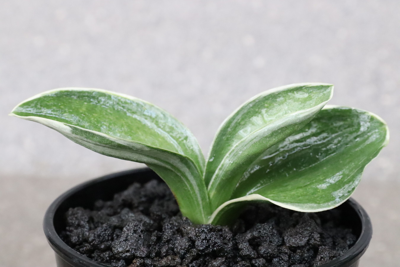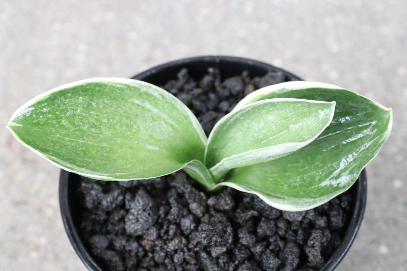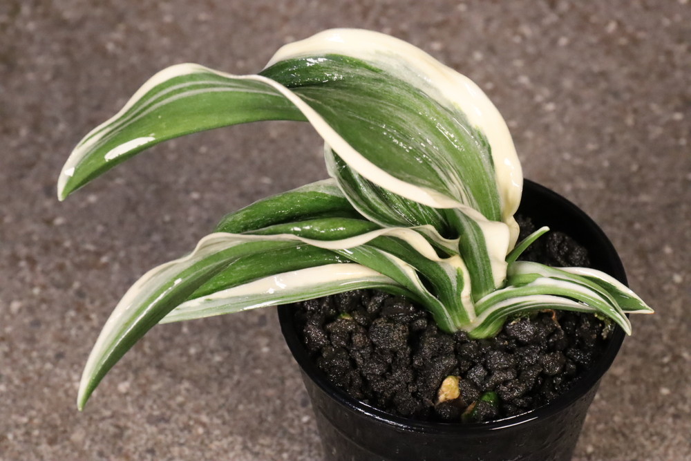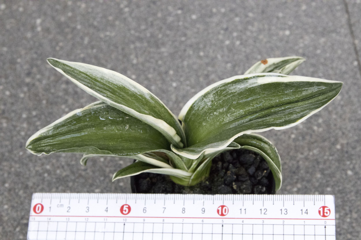 巾広の葉の覆輪は特に深くなり、特徴がはっきりしている品種