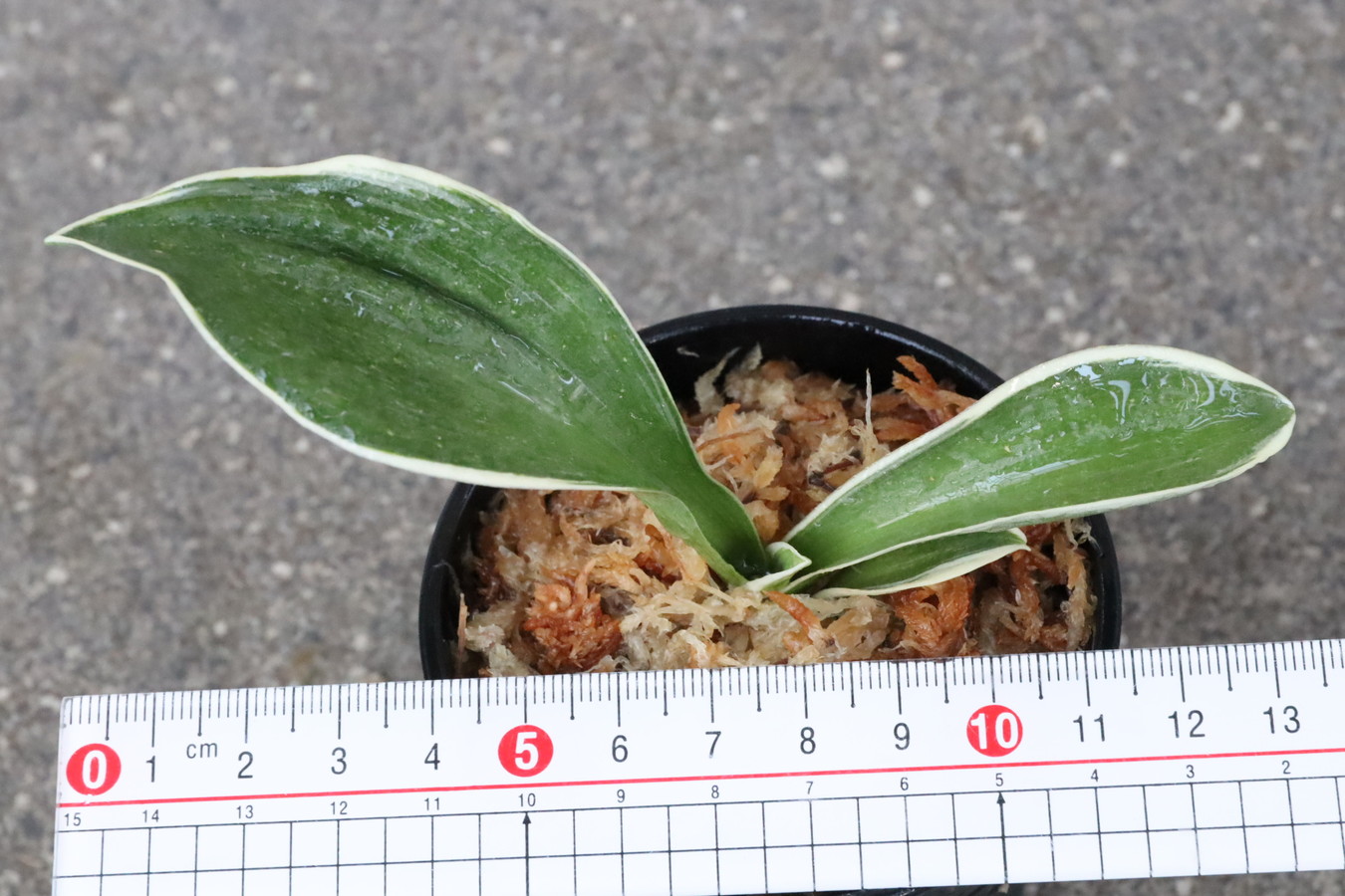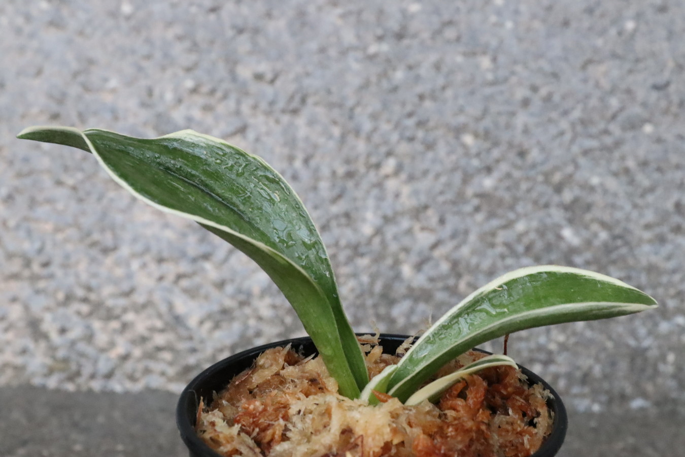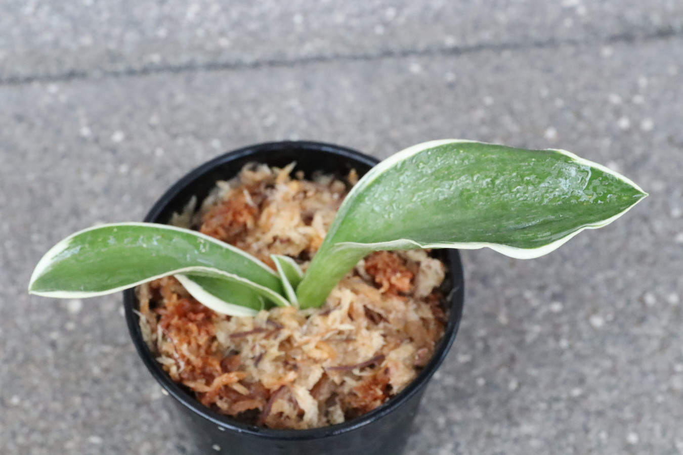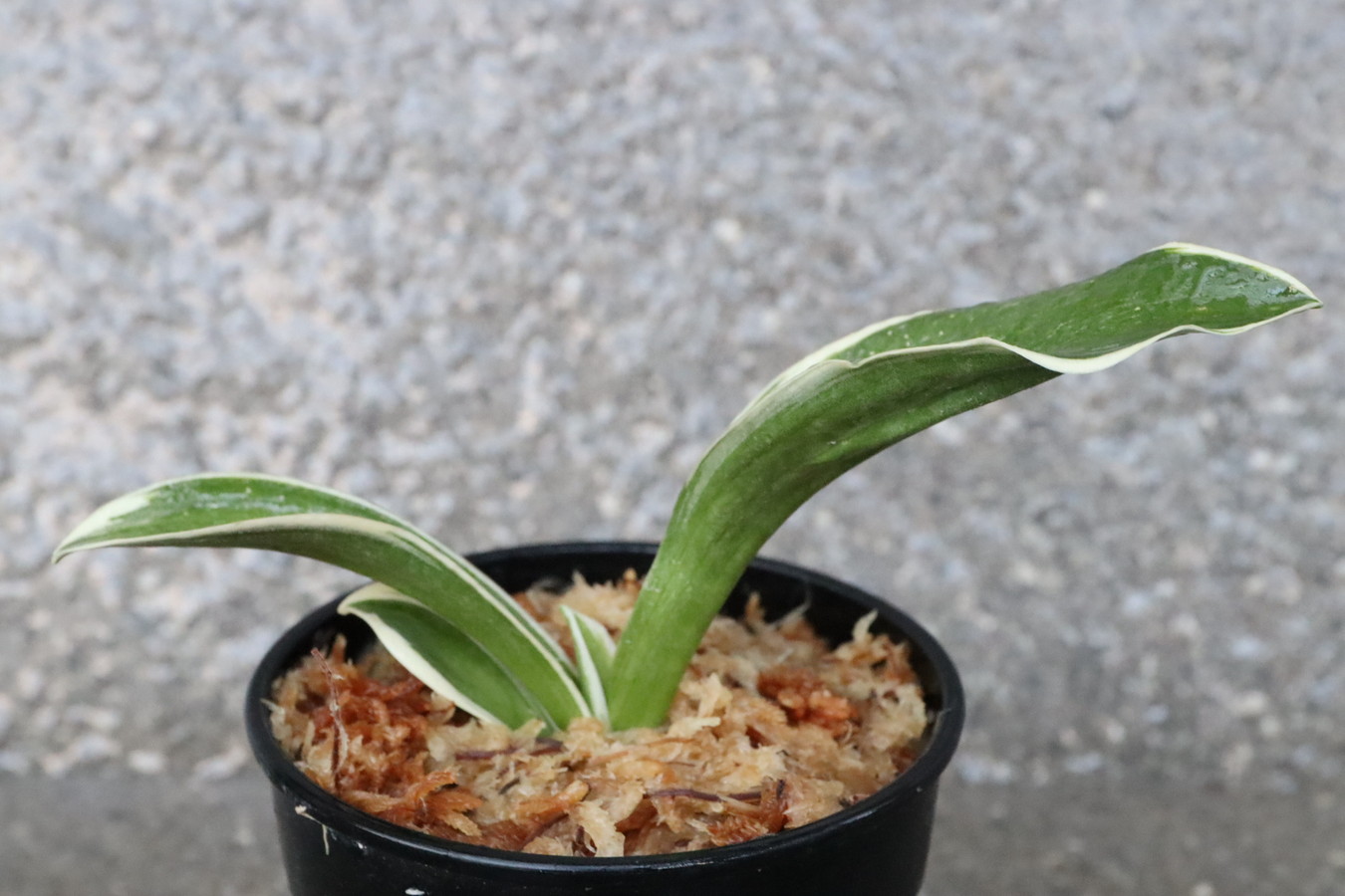 巾広の葉の覆輪は特に深くなり、特徴がはっきりしている品種