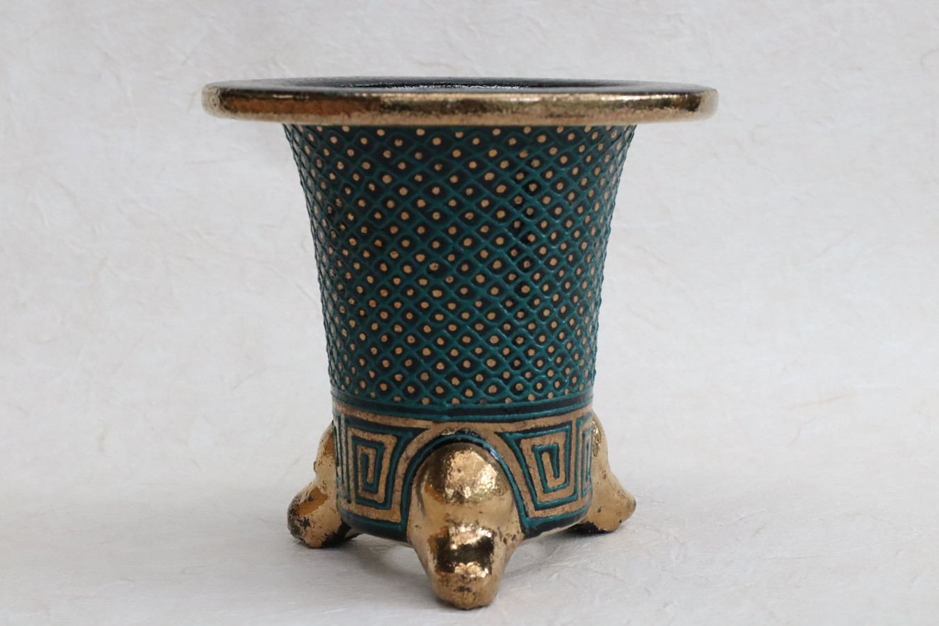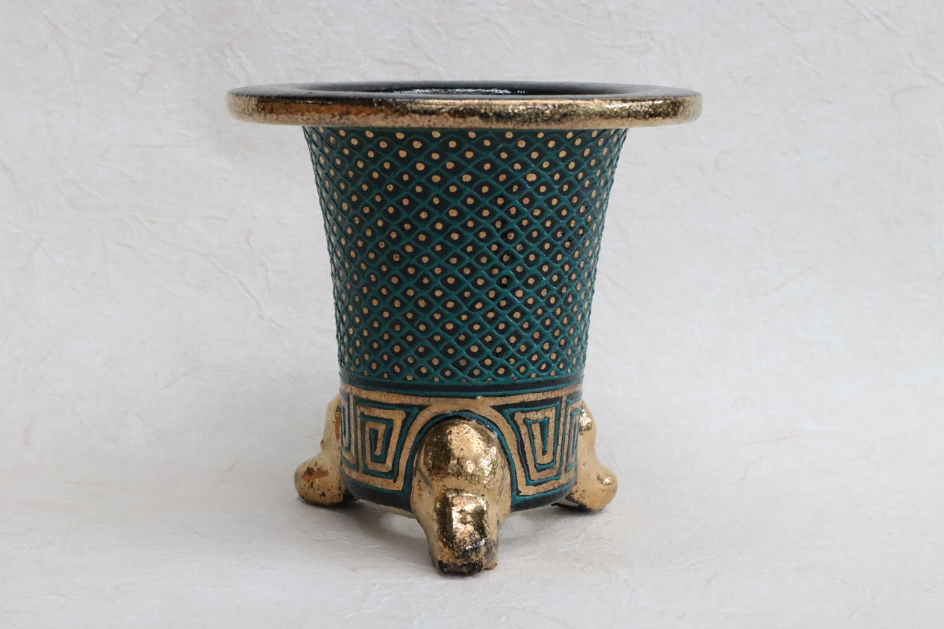細かな七々子。職人技です。古鉢にはまれにここまで、さらにはもっと細かなものまであり、ただ一つの柄ですが、職人は腕をみせる場所。 逆に、ごまかしの利かない、実力が分かってしまう場所でもあります。おもとを引き立たせる、美しい錦鉢の世界。