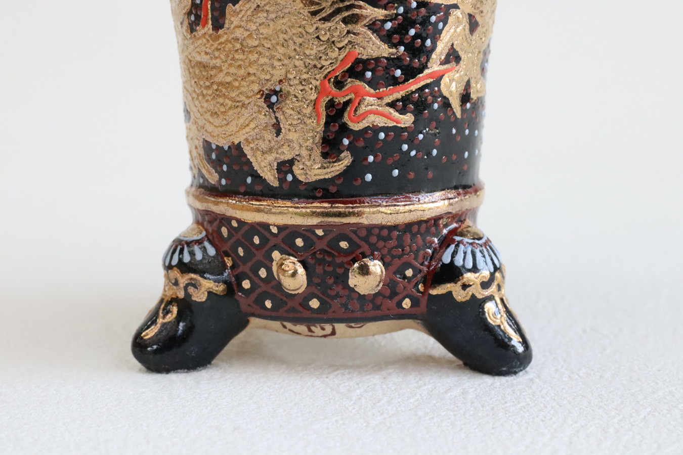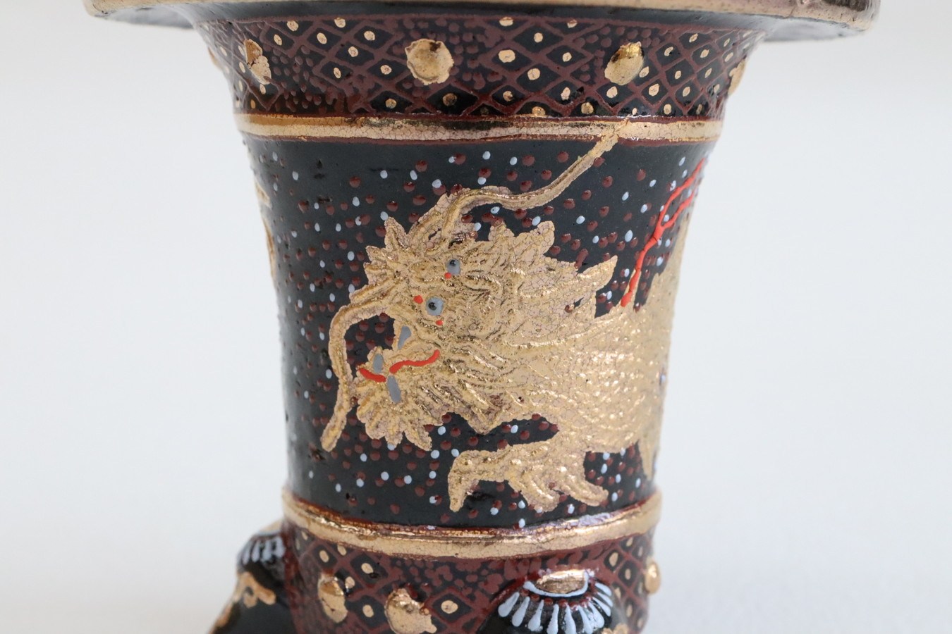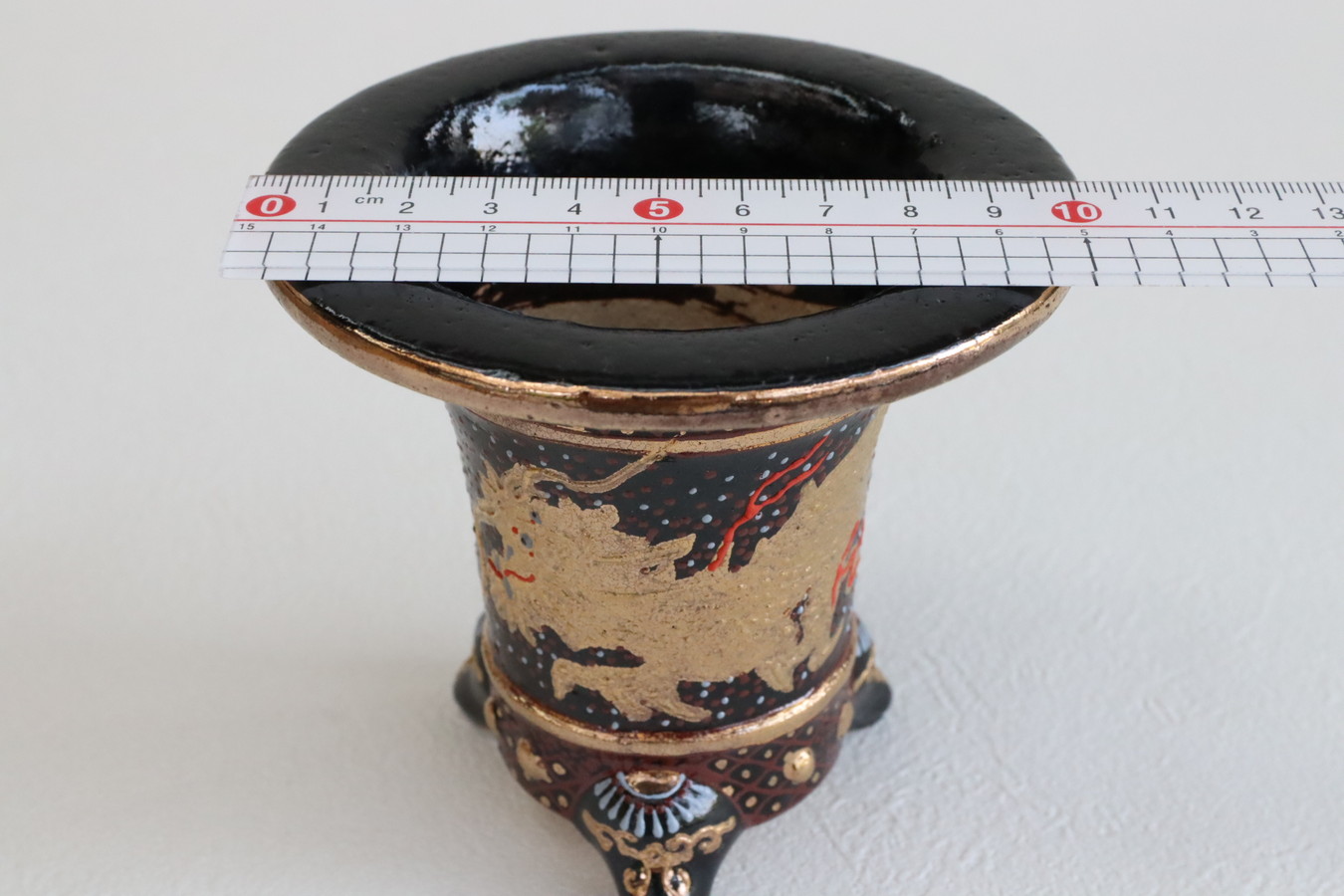 2477,特級 加茂黒太鼓胴 金龍 萬年青楽鉢 外径約10.3cm 亘サイン 華サイン 合作の傑作