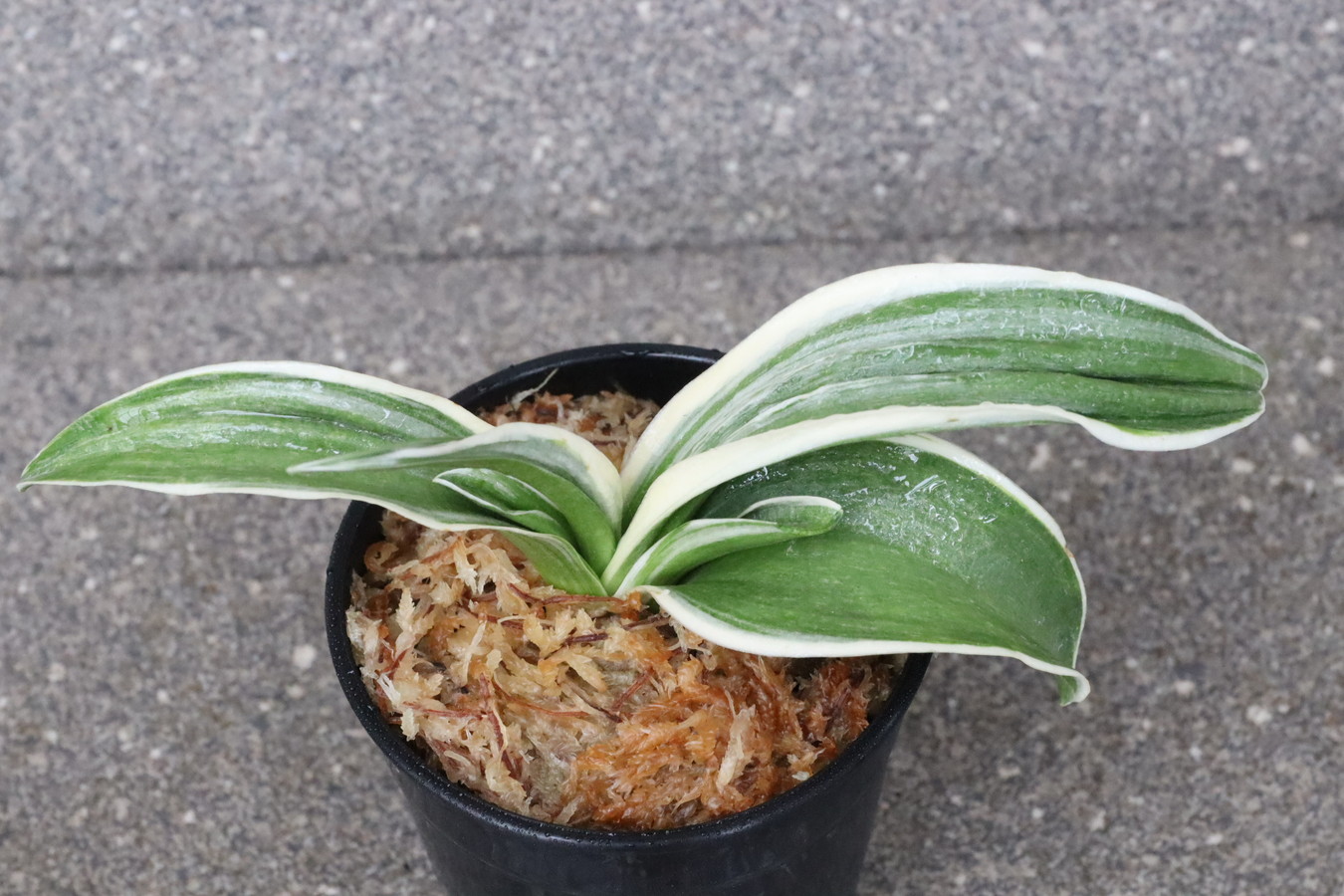 巾広の葉の覆輪は特に深くなり、特徴がはっきりしている品種