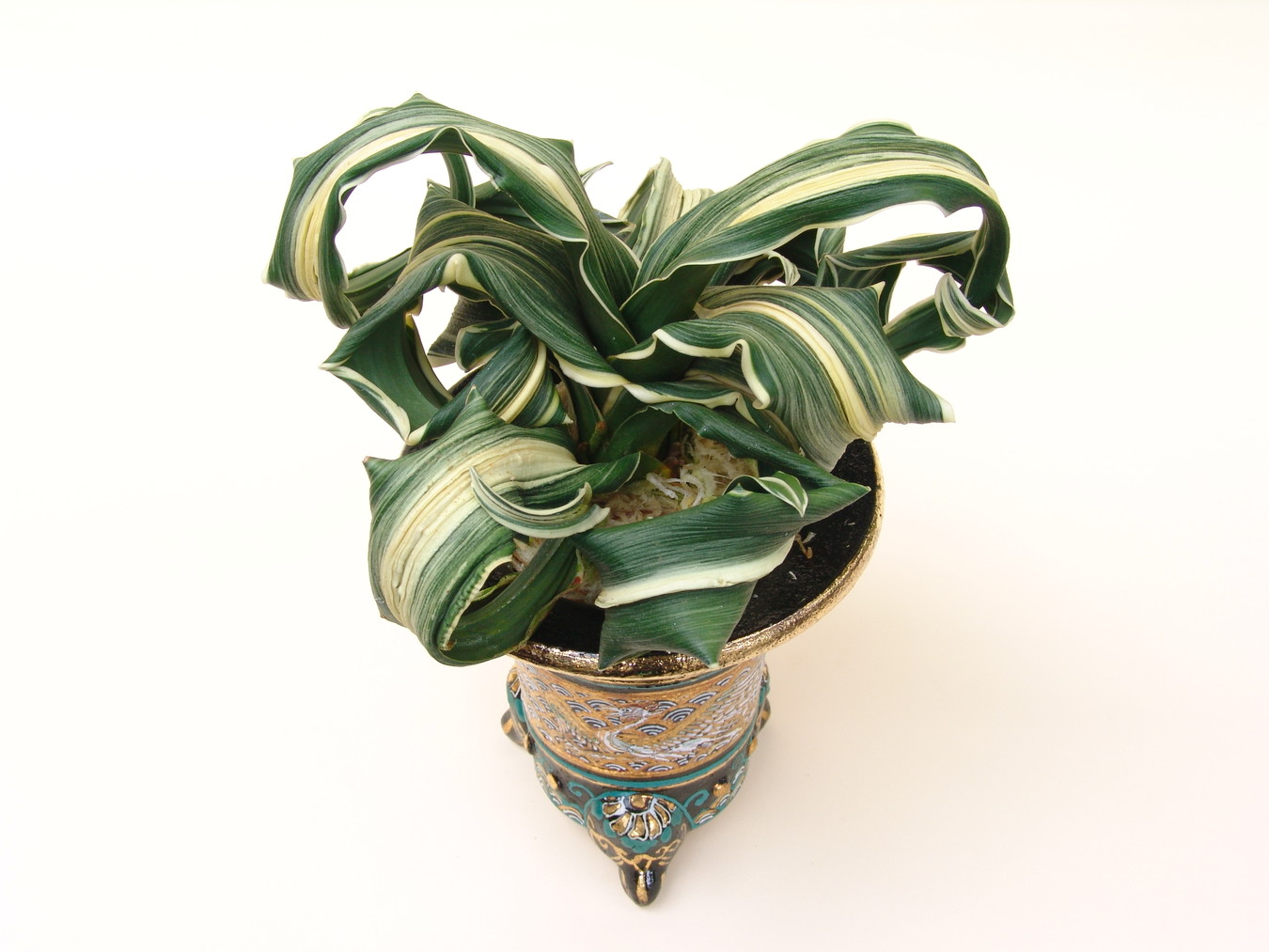 濃緑色の角巻き葉に低い総雅糸竜と二面甲竜をみせる美しい品種。