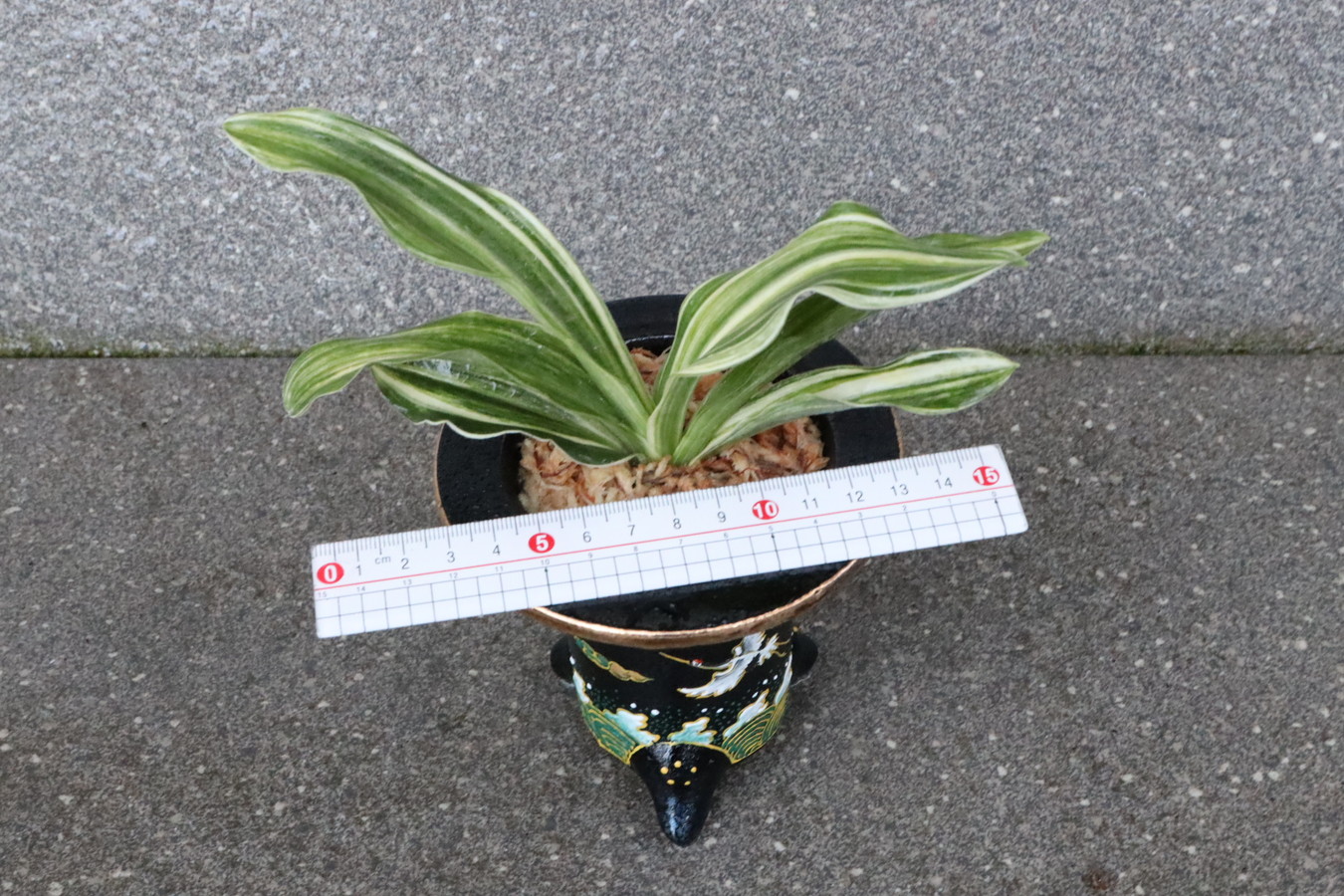 選び抜かれた万年青を一鉢ずつ丁寧に植え込みました。