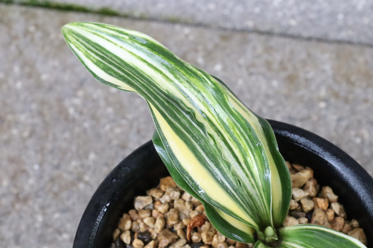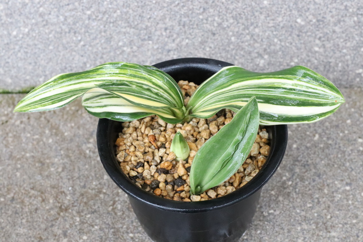 太陽:今の万年青界四天王とも言われる人気品種であり、最高の実親で、岳陽を生み、羅紗の実績は多数。実親もたくさん産んでいる。親が錦麒麟と福寿龍という素晴らしい実親なので、錦麒麟型、福寿龍型のような実生もみせる