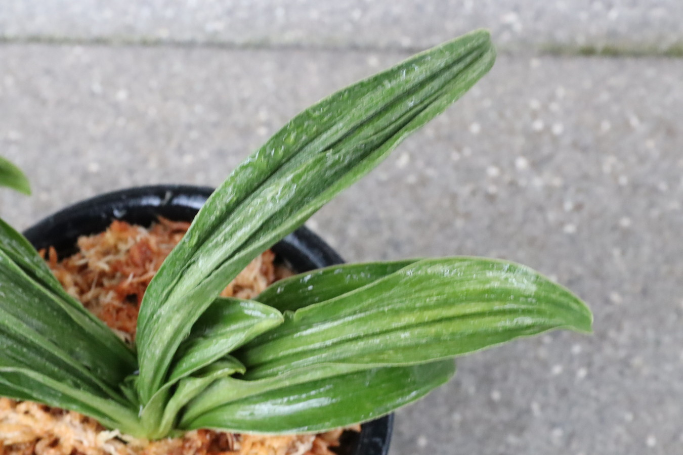 細長く伸びた葉にひくくビリを打った二面竜、甲竜をのせます。葉の地肌は櫛目に荒れて、腰の折下げの良い物です。実生は紺地が強く、細葉か中葉にでた葉は地合い良く光沢があり、出世率は最高です。『大車』から多くの銘品を輩出しています。 ♂♀両方に使います。
