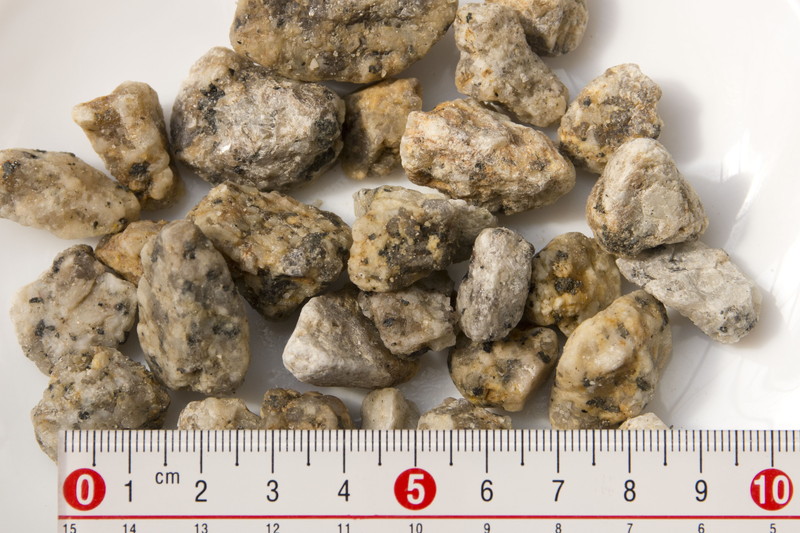 小・中・大と各種ありますがサイズの大まかな目安は小5㎜中12㎜大25㎜程ですが割れ・欠けやフルイの掛け具合によりまばらです。サンプルと定規を当てて撮影しましたのでサイズ感は画像でご確認ください。