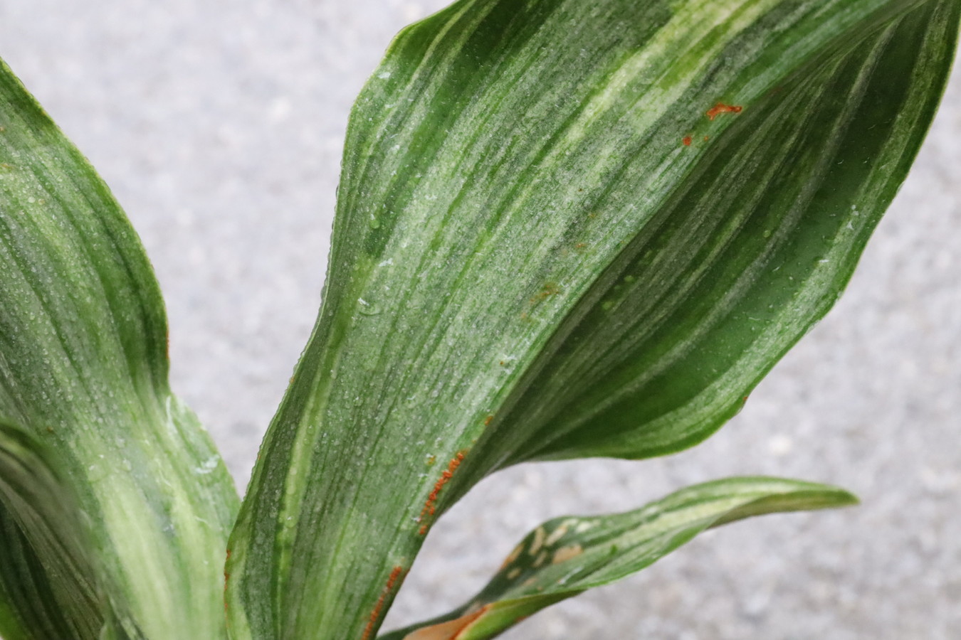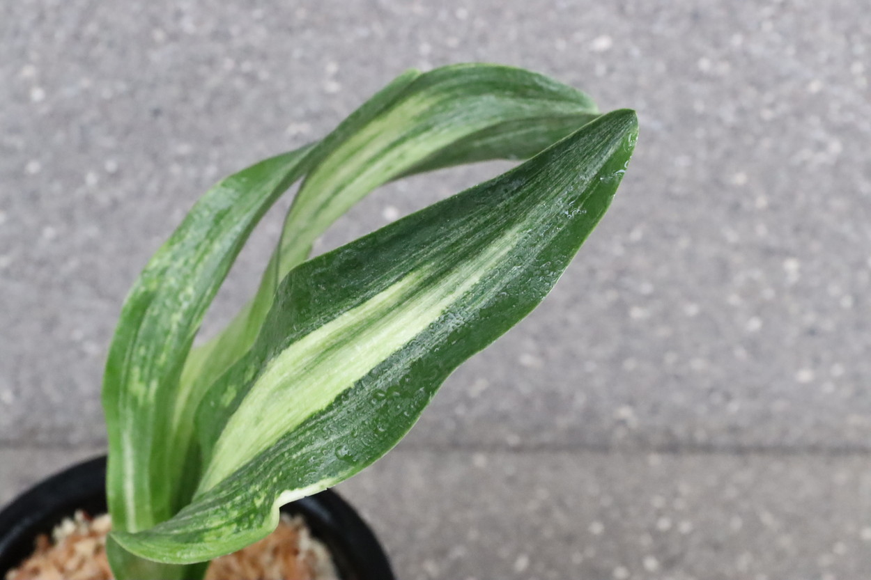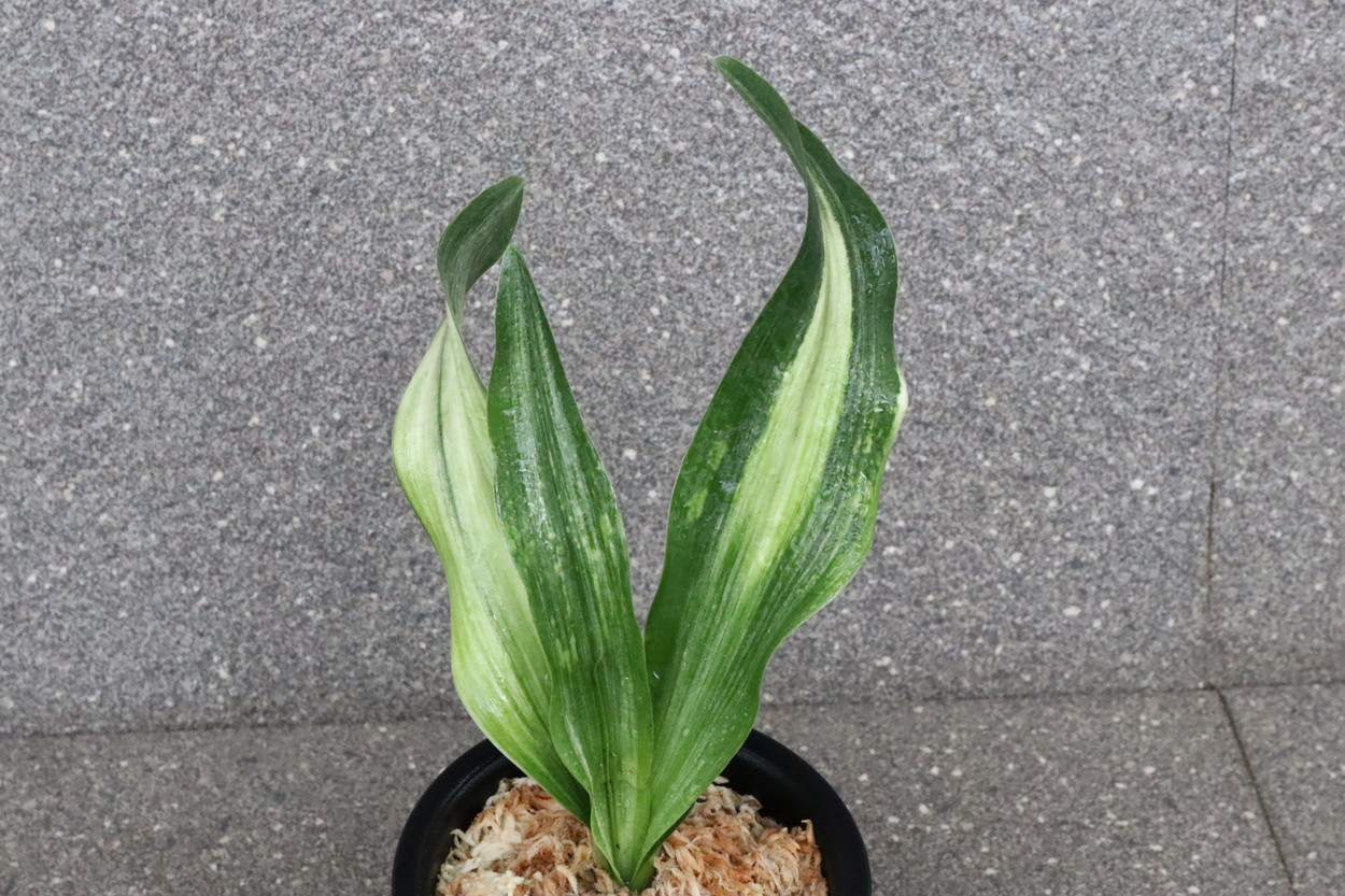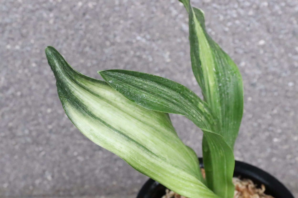 ふっくらした白斑葉は虎班を見せ肉厚で紺覆輪を現わす。