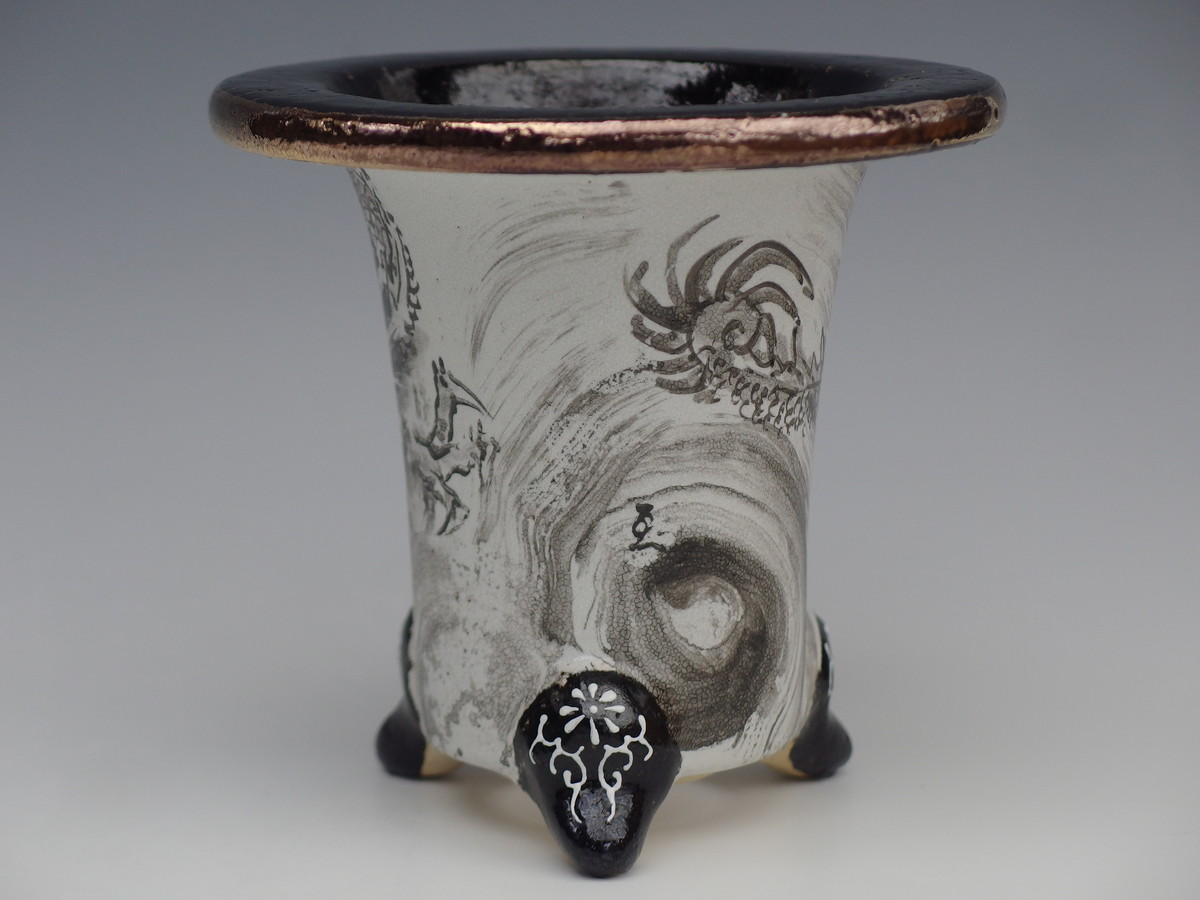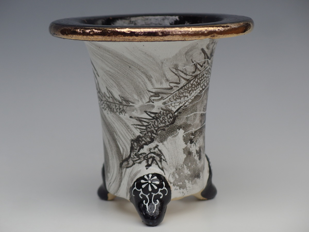 亘作 万年青鉢 オモト鉢 万年青鉢 オモト鉢楽焼は天正年間(約400年前)に始まる日本独特の焼き物です。楽焼は《急熱急冷》という特殊な焼成方法をとります。急熱急冷だから、鉢に細かな 微細な穴ができ、通気を良くしています楽焼製造工程 楽焼足付け工程おもと鉢の色々 万年青錦鉢七々子の解説