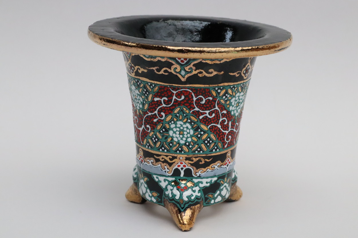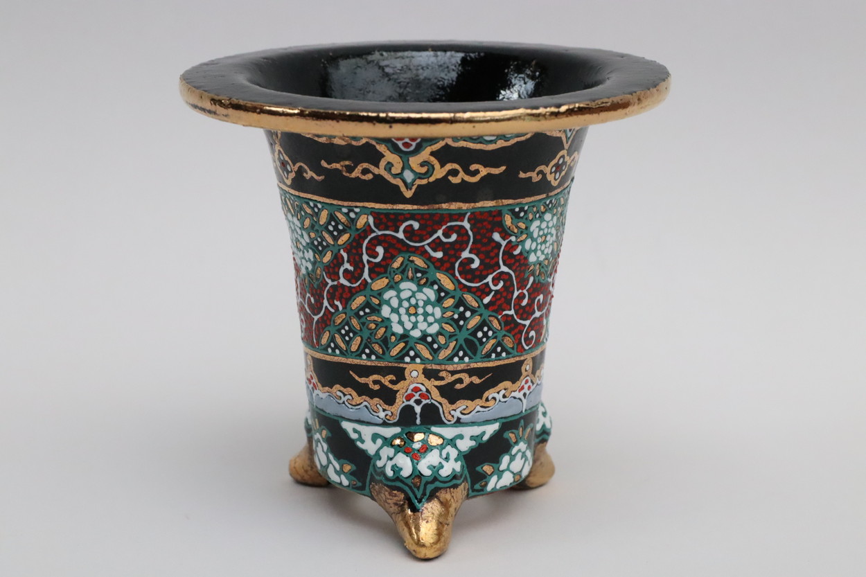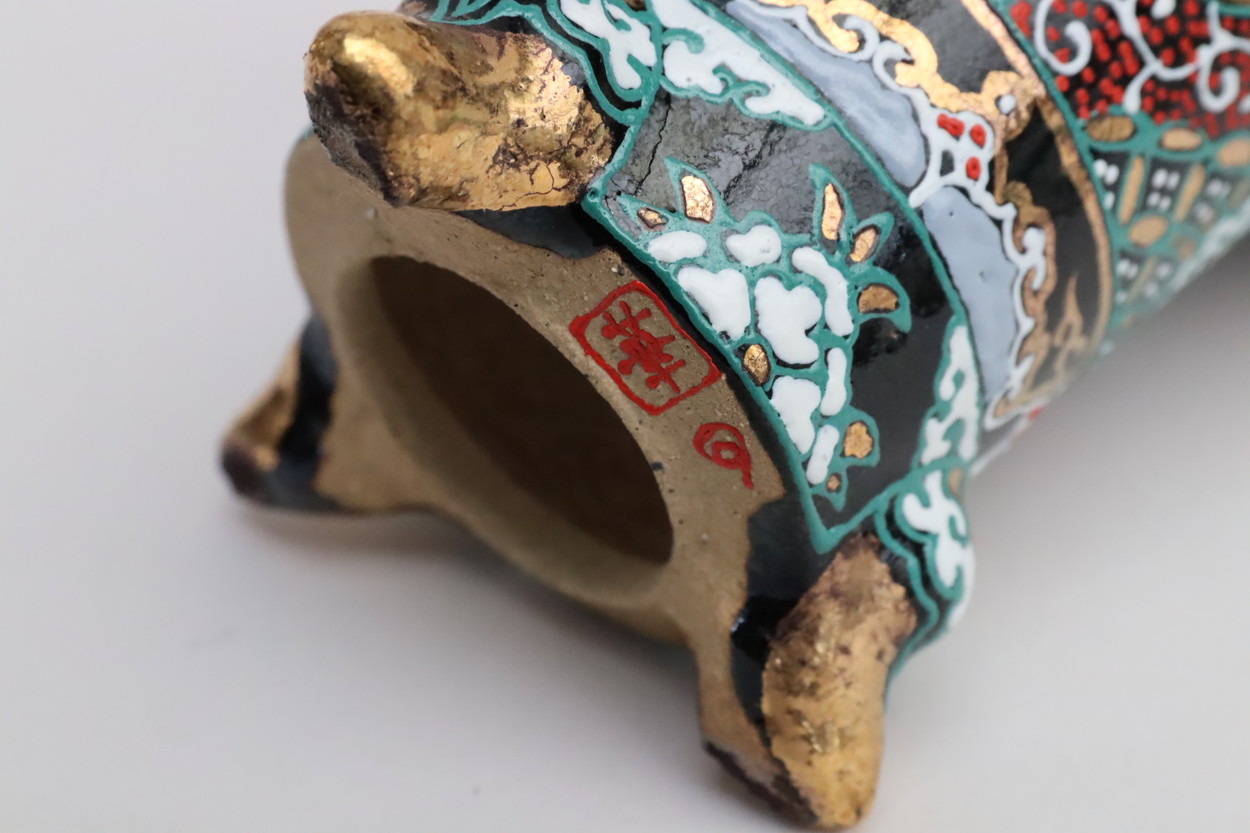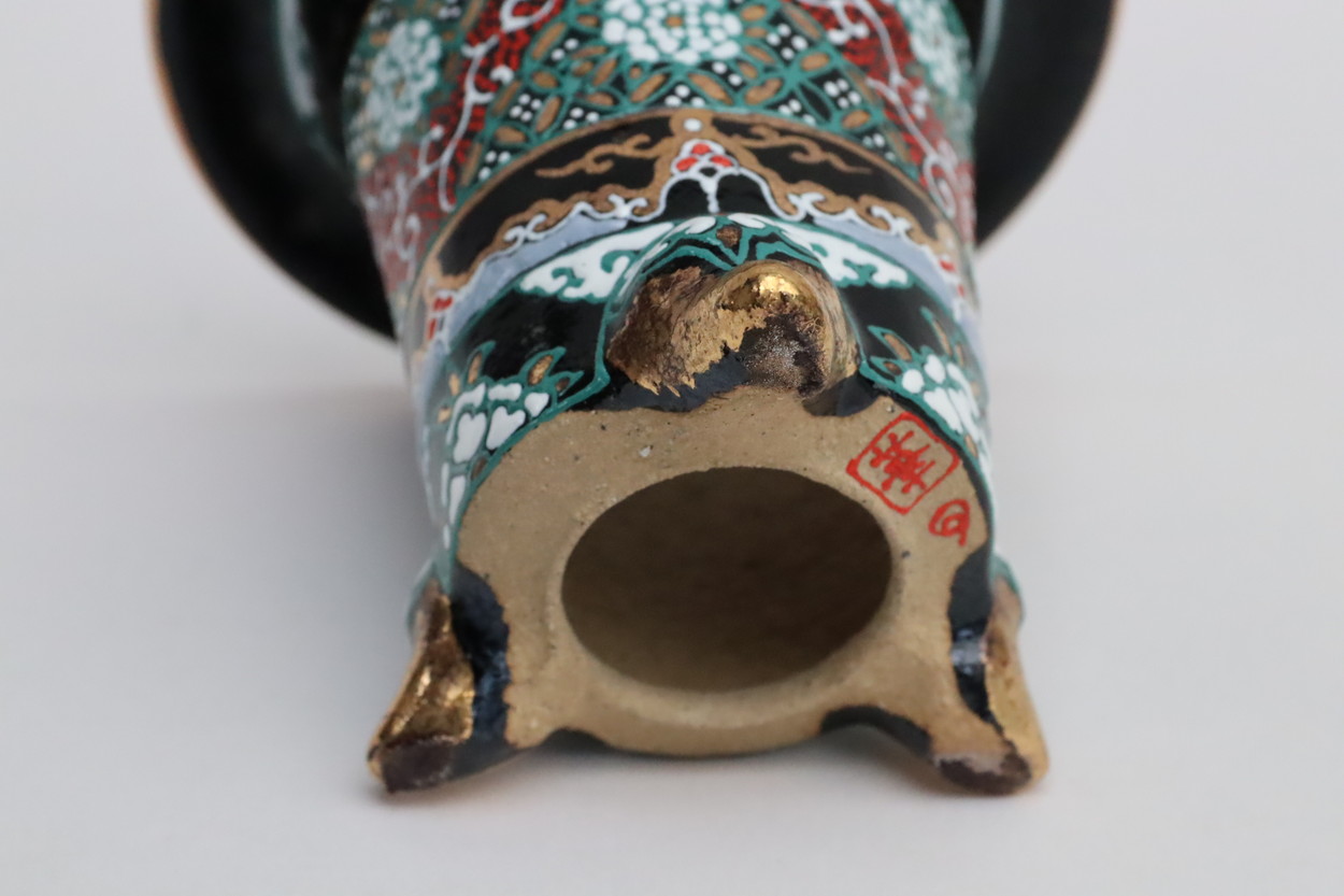 2069,金華唐草 外径約9.6cm 最初期の作品華サインなし 賀茂黒