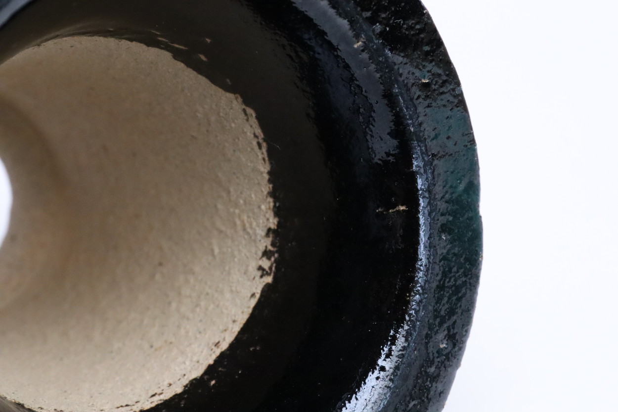 2233,加茂黒 雷紋吉祥 外径約10.4㎝ 華サイン 賀茂黒