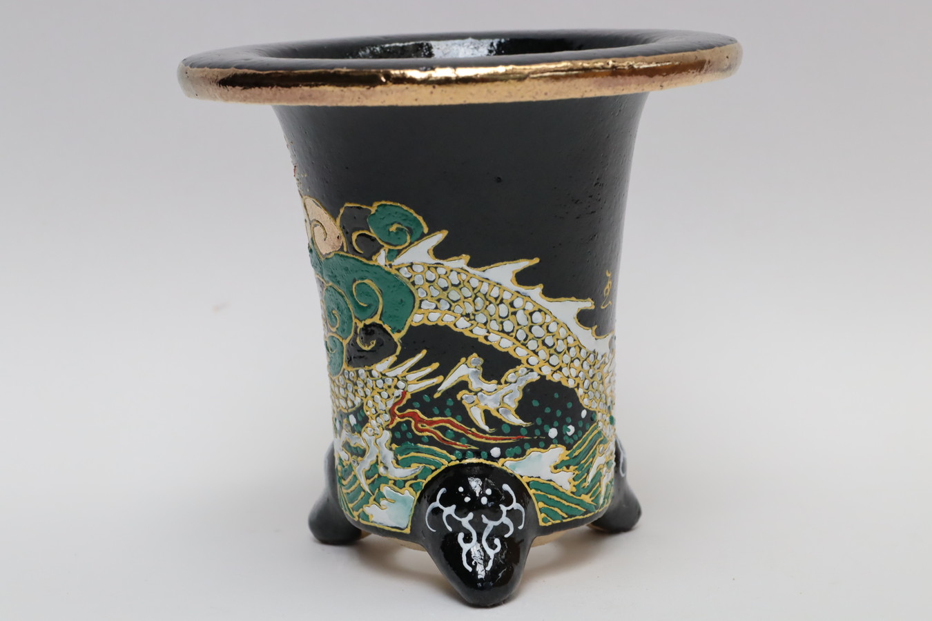 2033,海龍 万年青楽鉢 外径約10.8cm 亘サイン