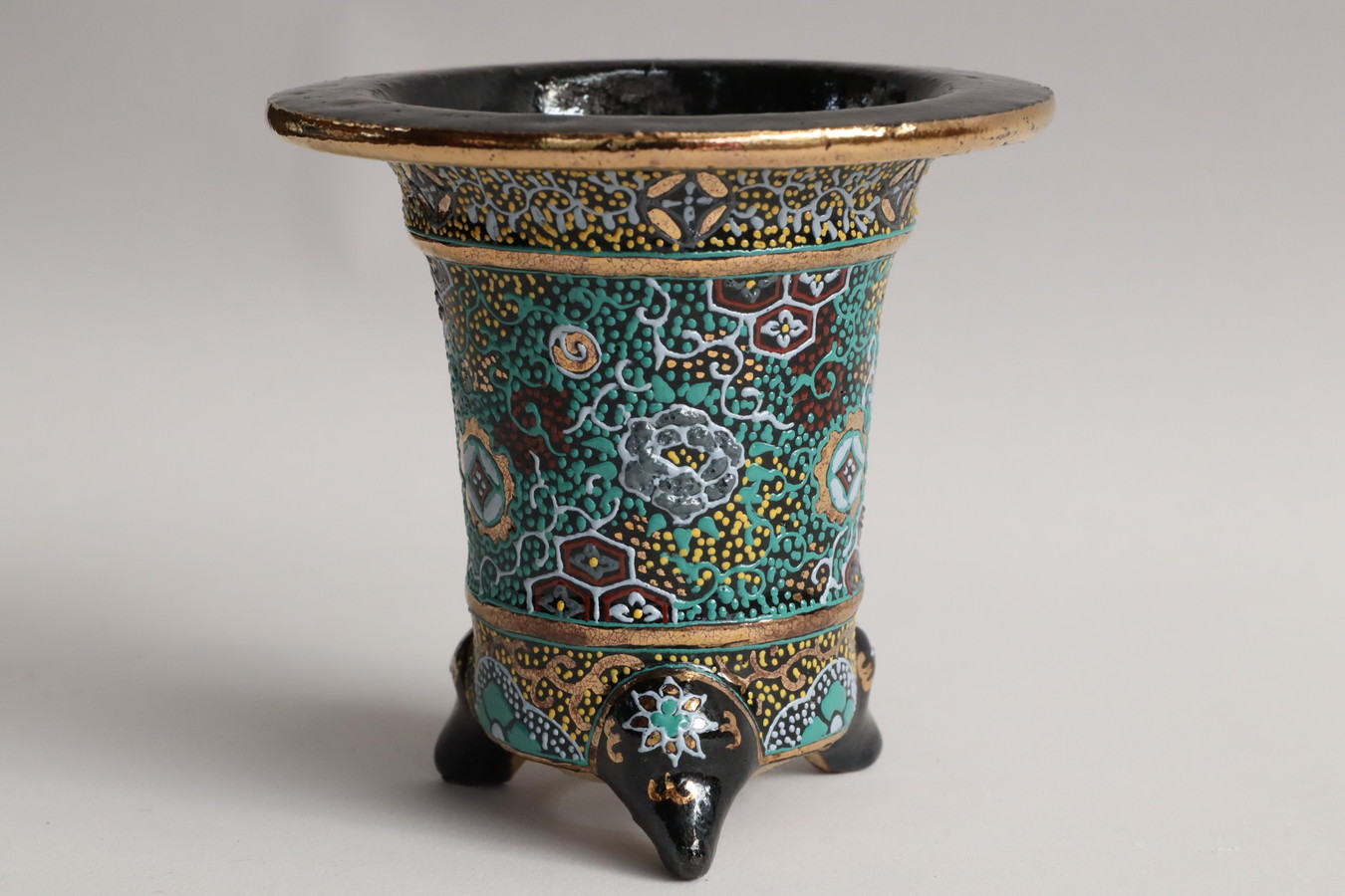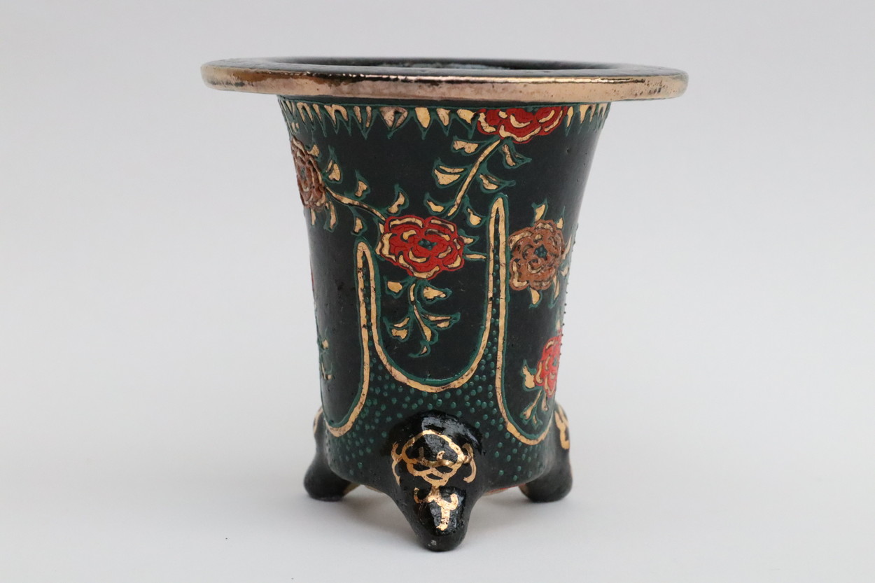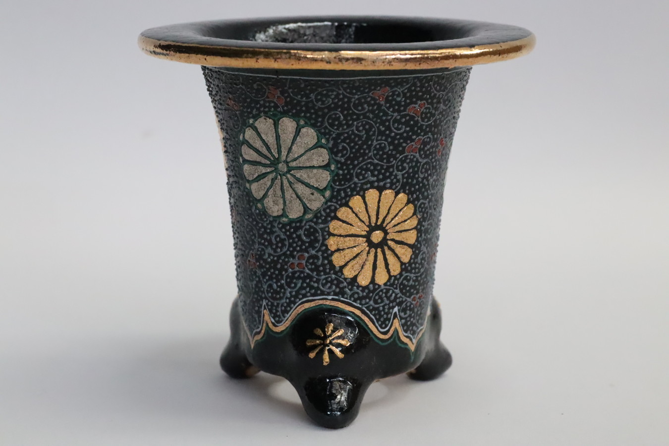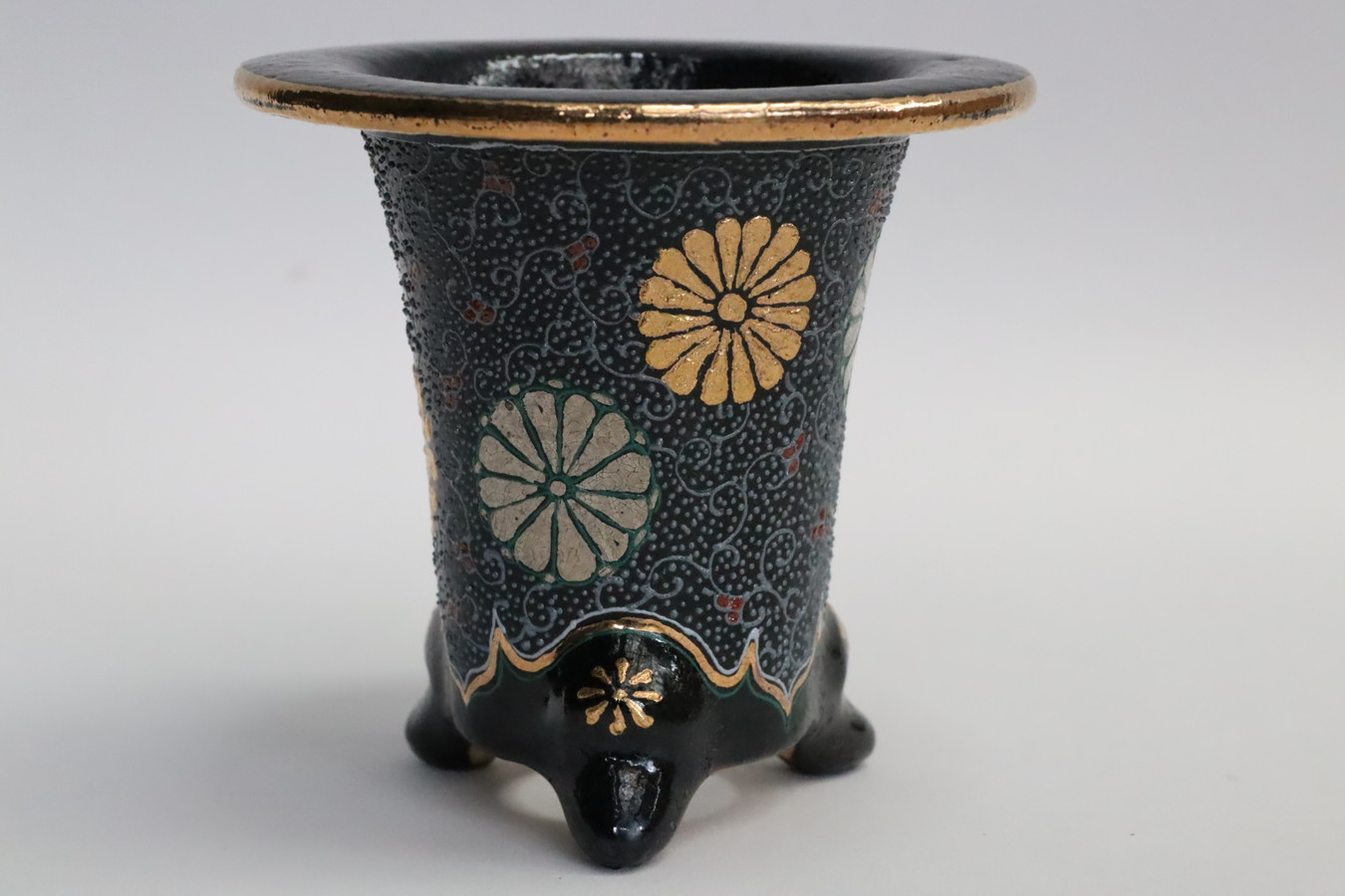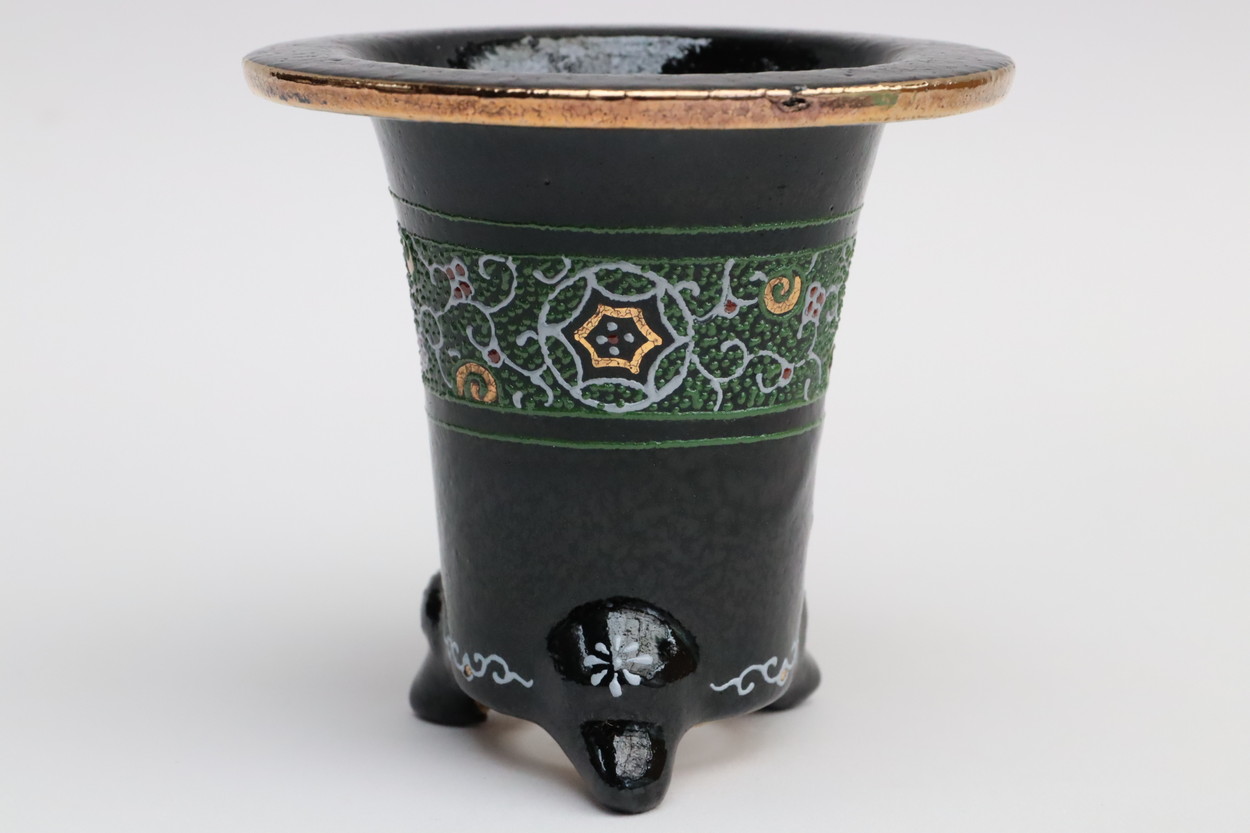 2024.9.1 万年青鉢 オモト鉢 作素晴らしい これ以上細い線を描ける作家さんは江戸時代から今までいなかった!??華氏の作品が他の人が真似ができないのは、この線にあります。金銀を要所へ惜しみなく使ってあります。