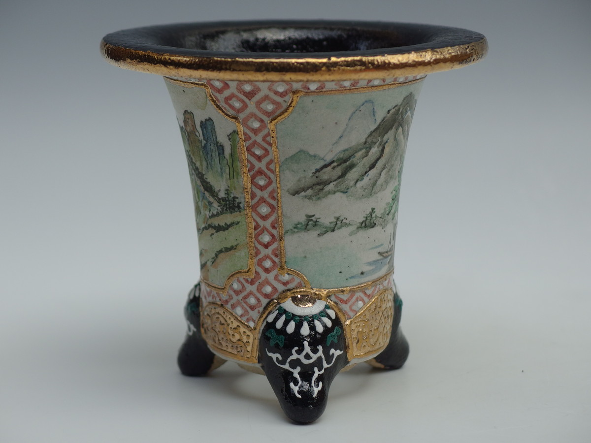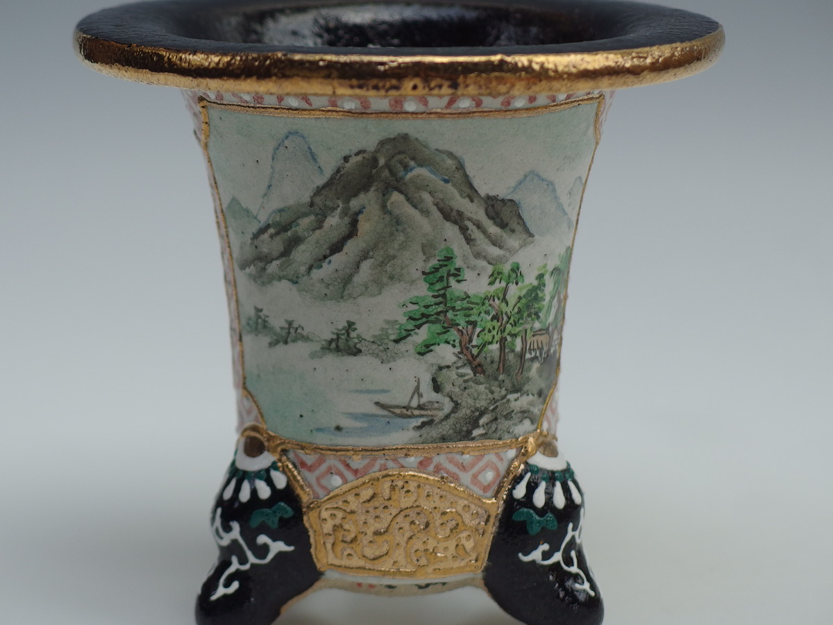 2579, 山水楽鉢 外形約10.2㎝ 清山絵