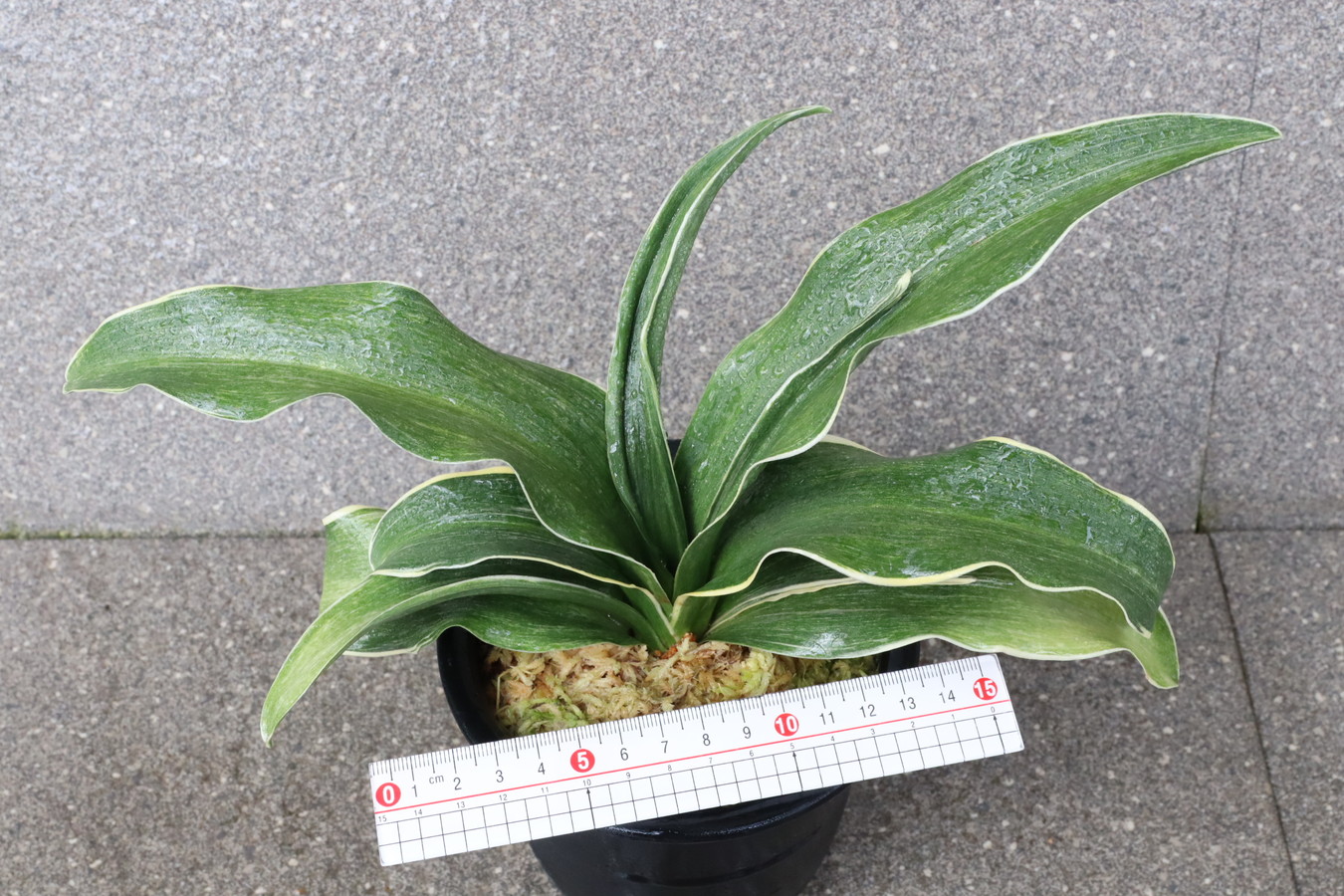 葉先は少し丸く一本竜を見せます、波打つ葉に胡麻斑を現す品種。性質は強健で繁殖も良い。胡麻斑の鮮明なものは「桑名性」という。