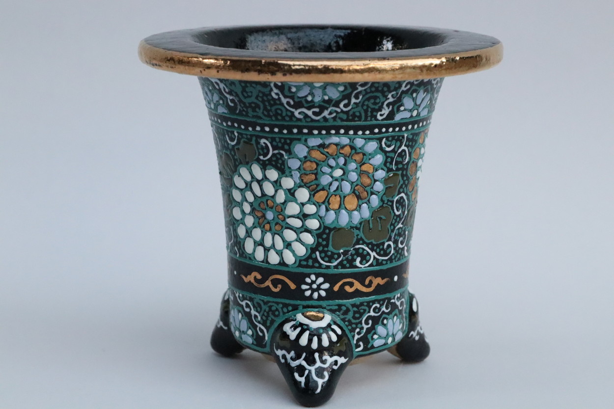 2025.8.27 万年青鉢 オモト鉢 1点限り優しさの作家 梅花さん楽焼は天正年間(約400年前)に始まる日本独特の焼き物です。楽焼は《急熱急冷》という特殊な焼成方法をとります。急熱急冷だから、鉢に細かな 微細な穴ができ、通気を良くしています。おもと鉢 七々子鉢