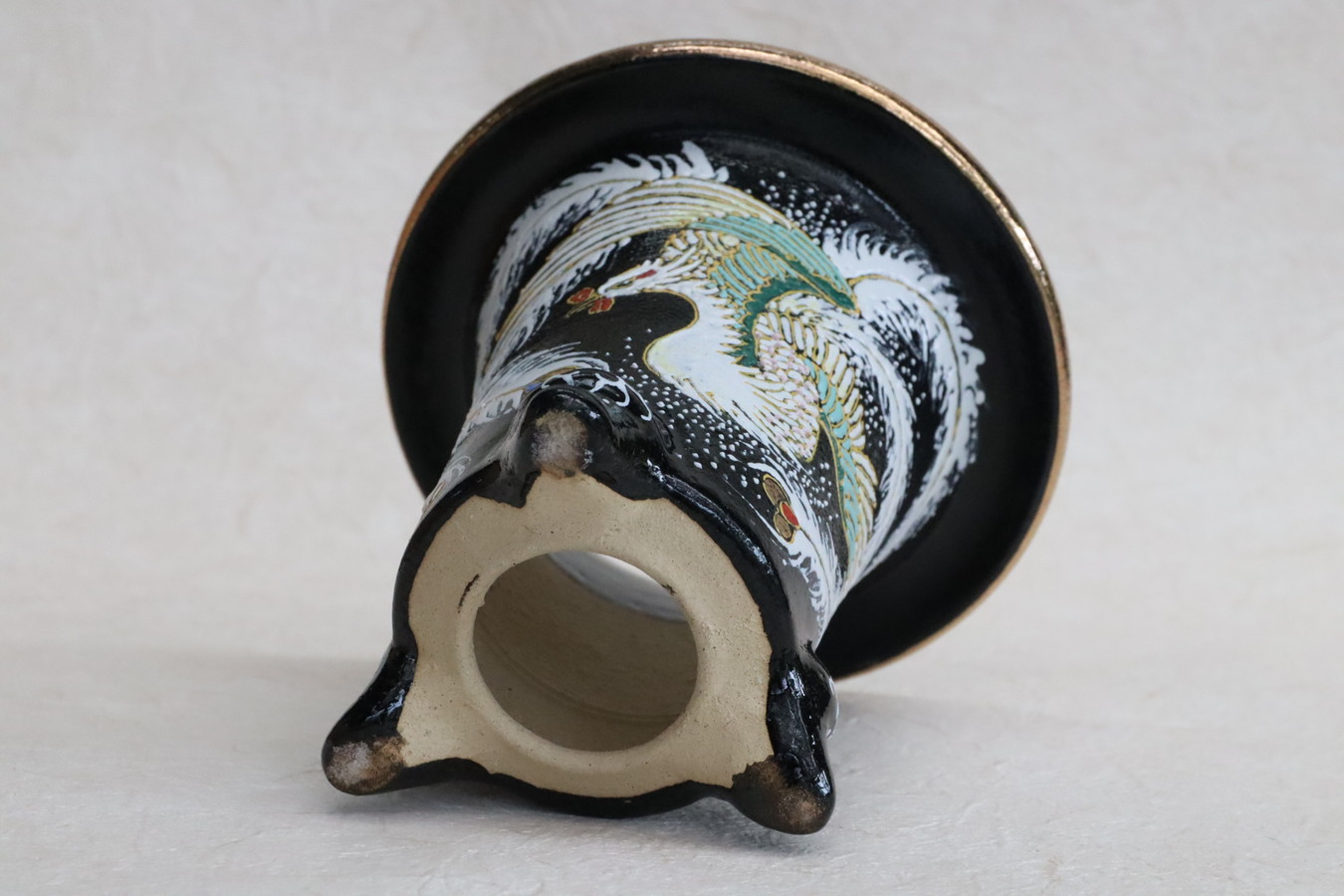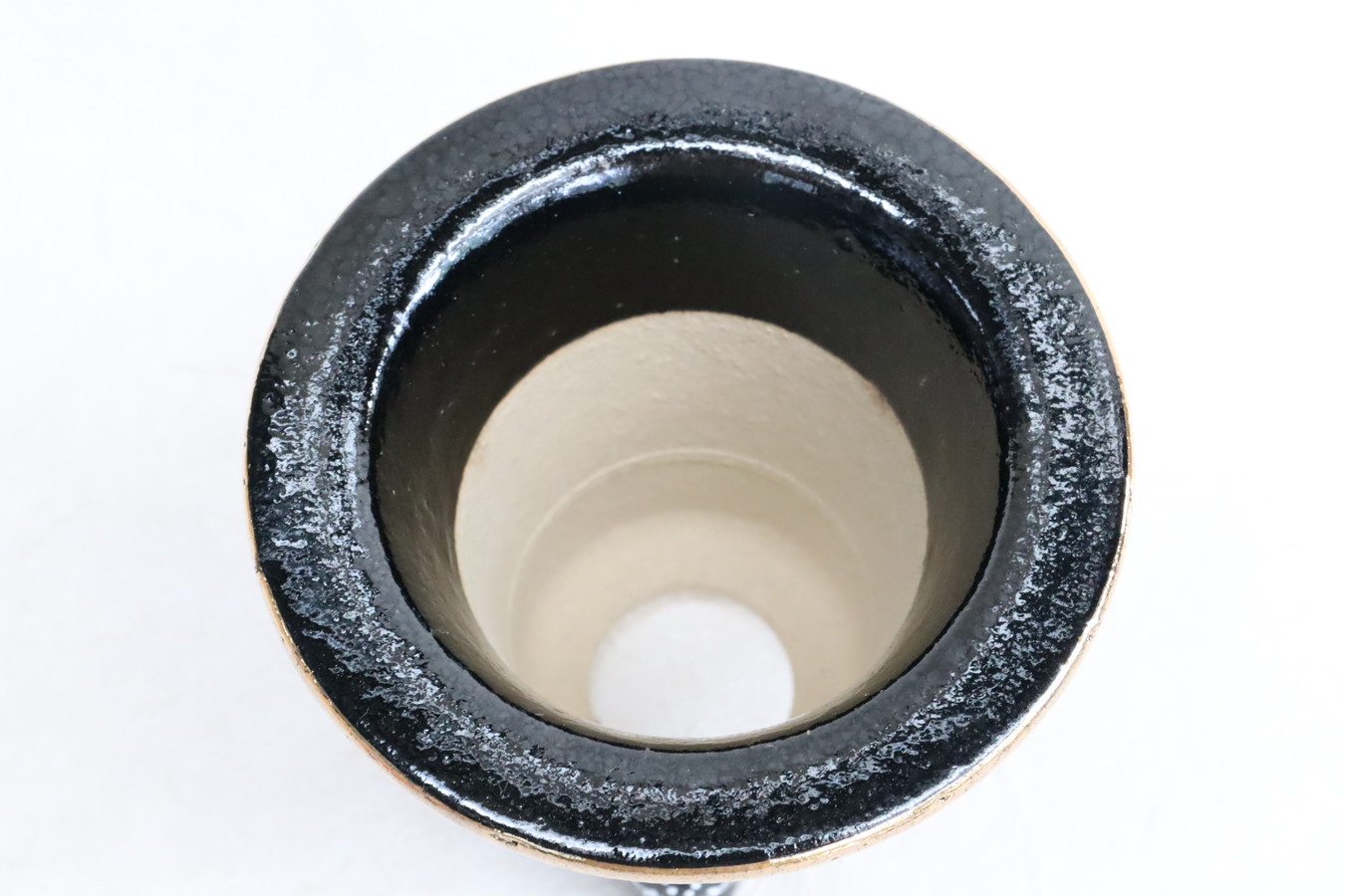 2598,【最上級青海波】萬年青楽鉢 外径約9.5cm 高さ約9.0cm 華サイン 縁浅胴太 賀茂黒