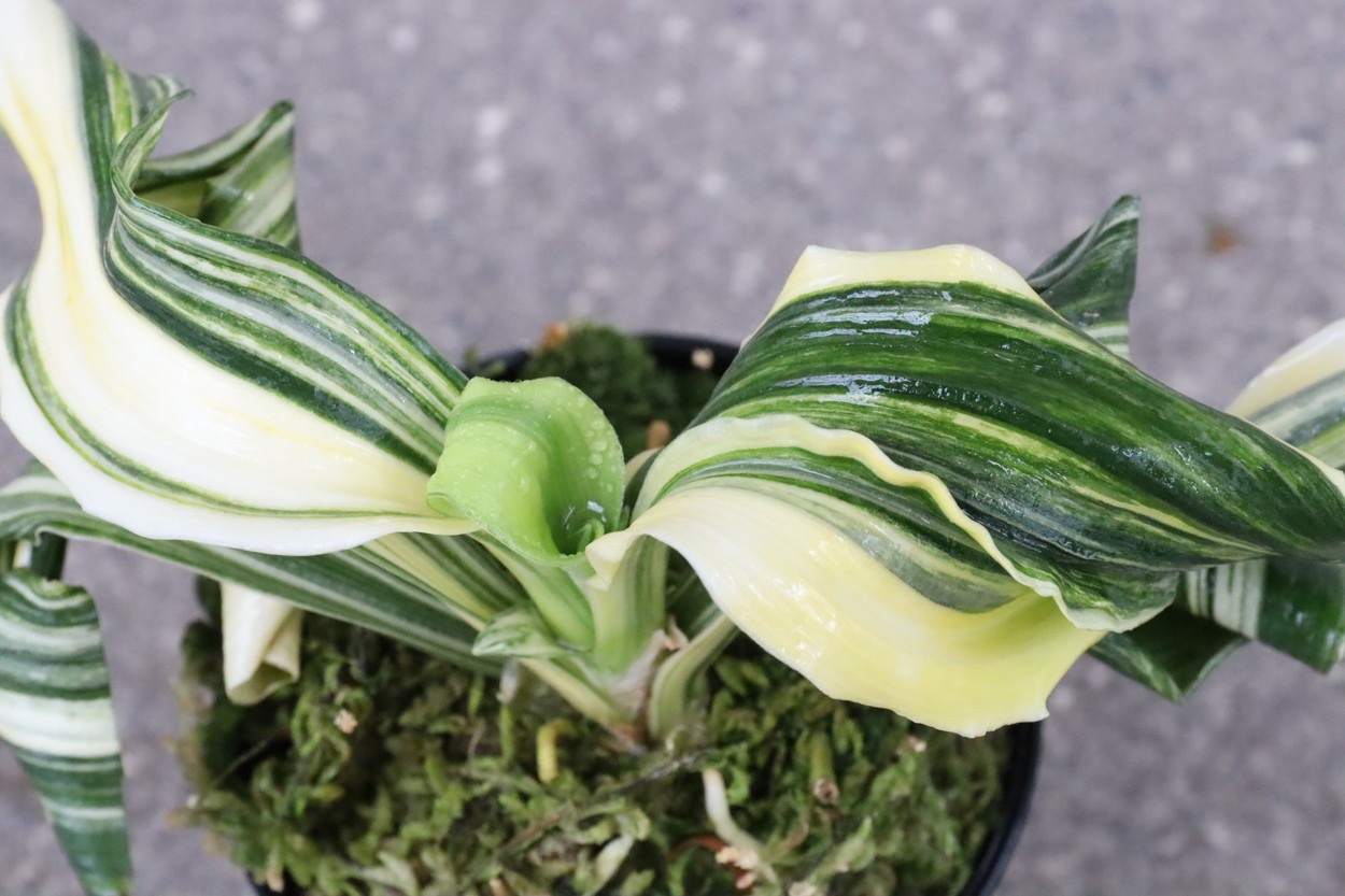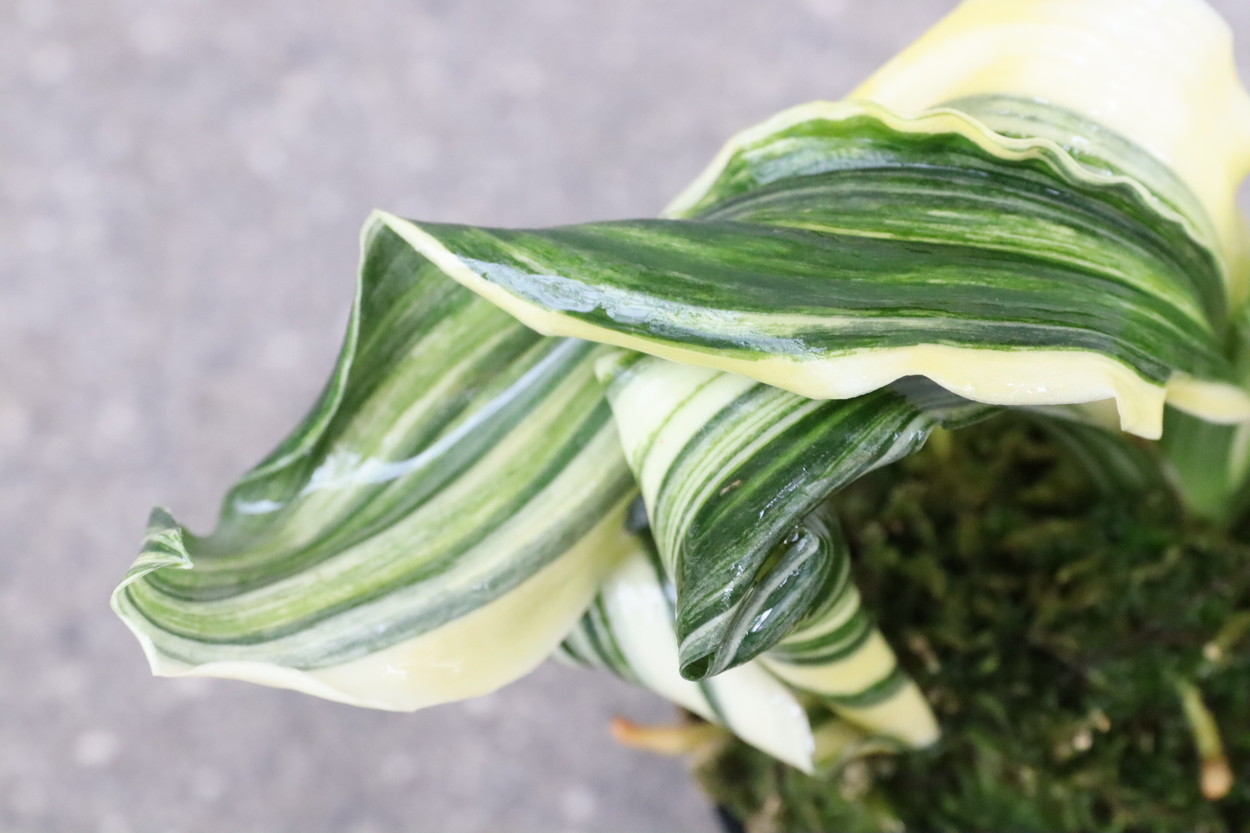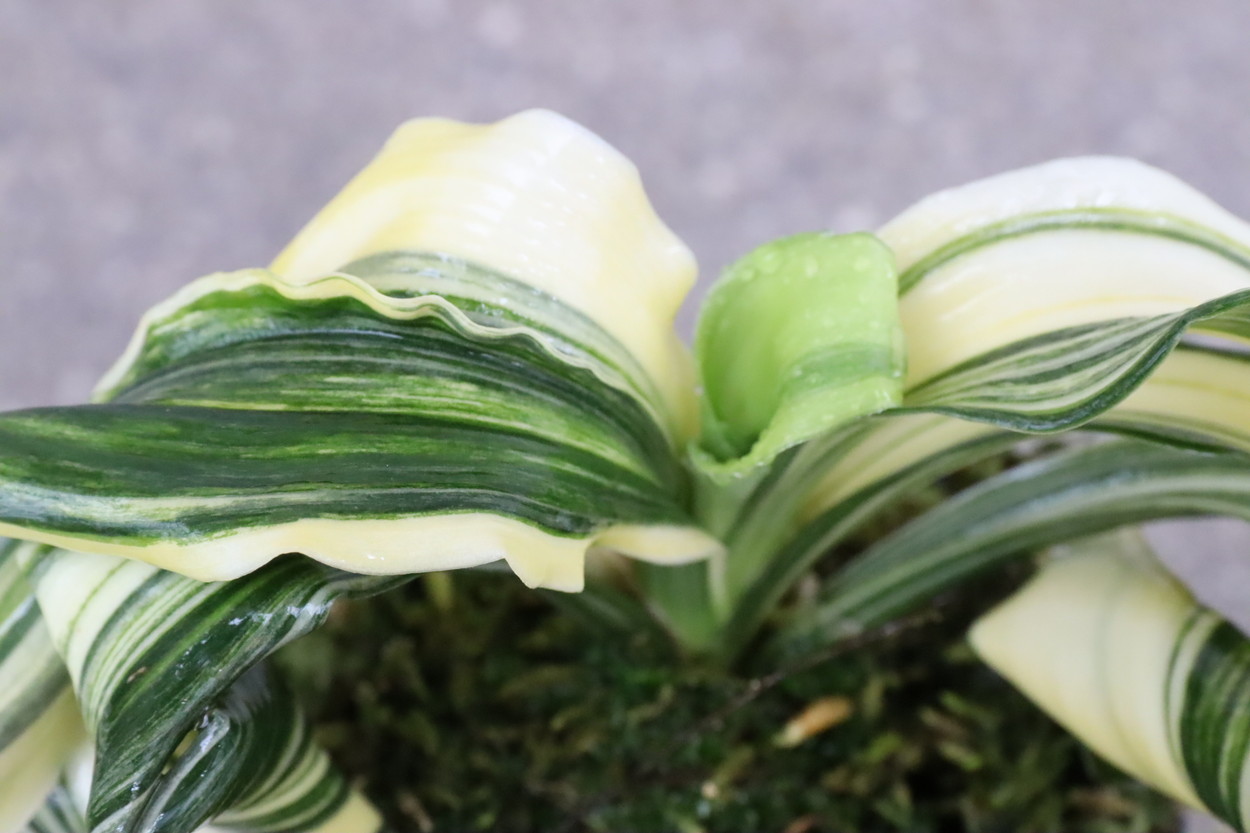 今では、EUなど海外に送ることが多い希少な獅子万年青。非常に珍しい葉が自然に巻く萬年青で、先人が江戸時代には見出して現代に大切に伝えています