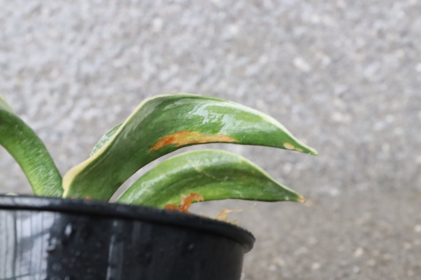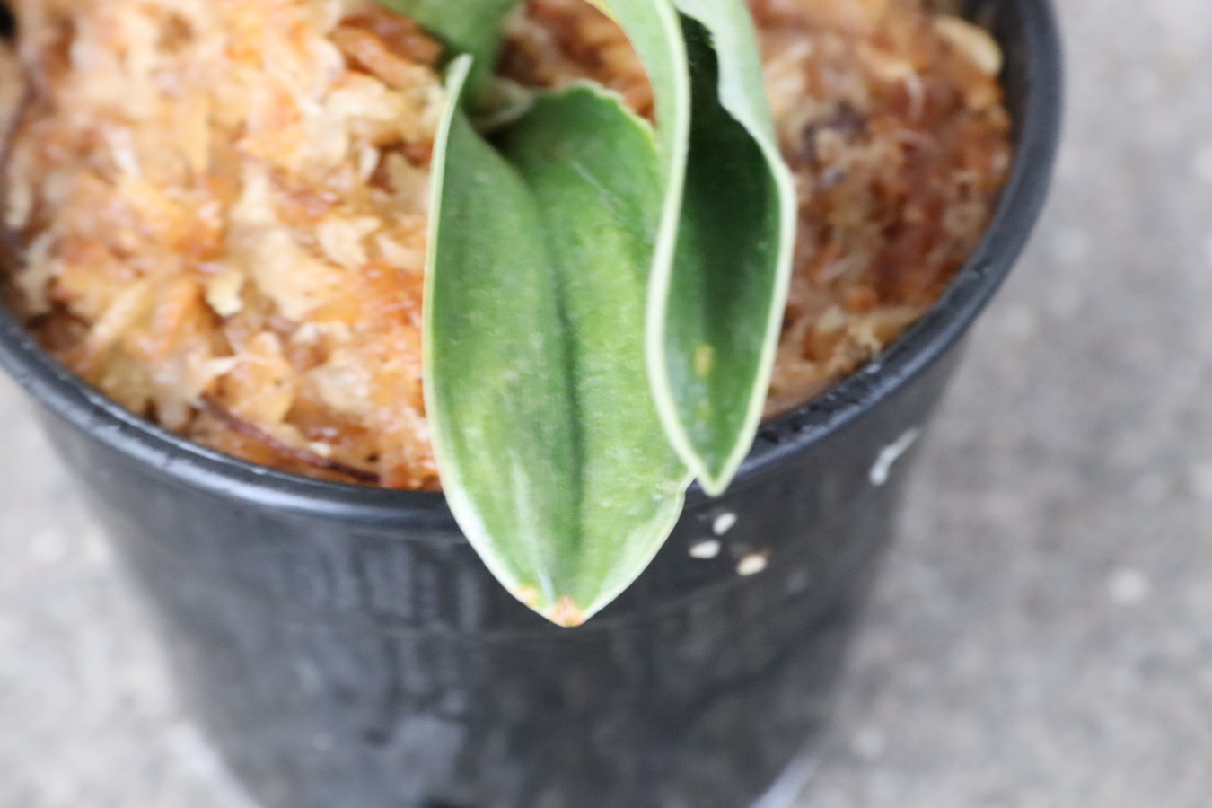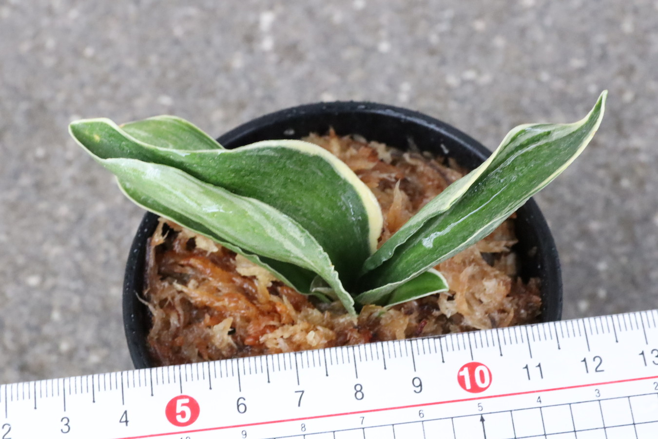 小型の木に、熨斗葉、特徴的な深い覆輪を見せる