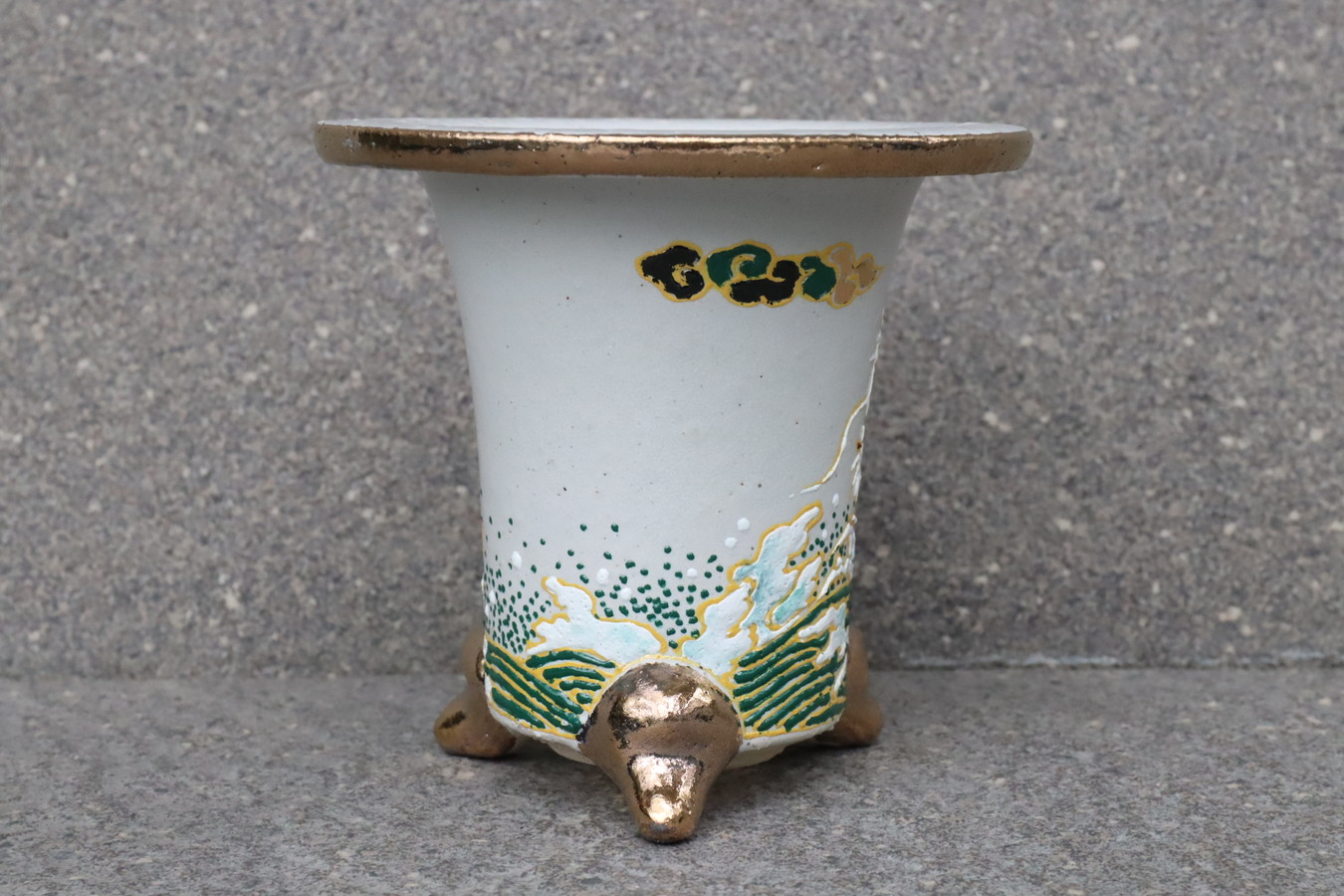 龍 もともと龍が神聖なものの象徴として古来から崇められていたものです。 昇龍という言葉があるように龍は天に上るものとして信じられている架空の動物です。 その錦鉢には勝負運上昇、立身出世など上昇を目指す意味合いが強く込められています。