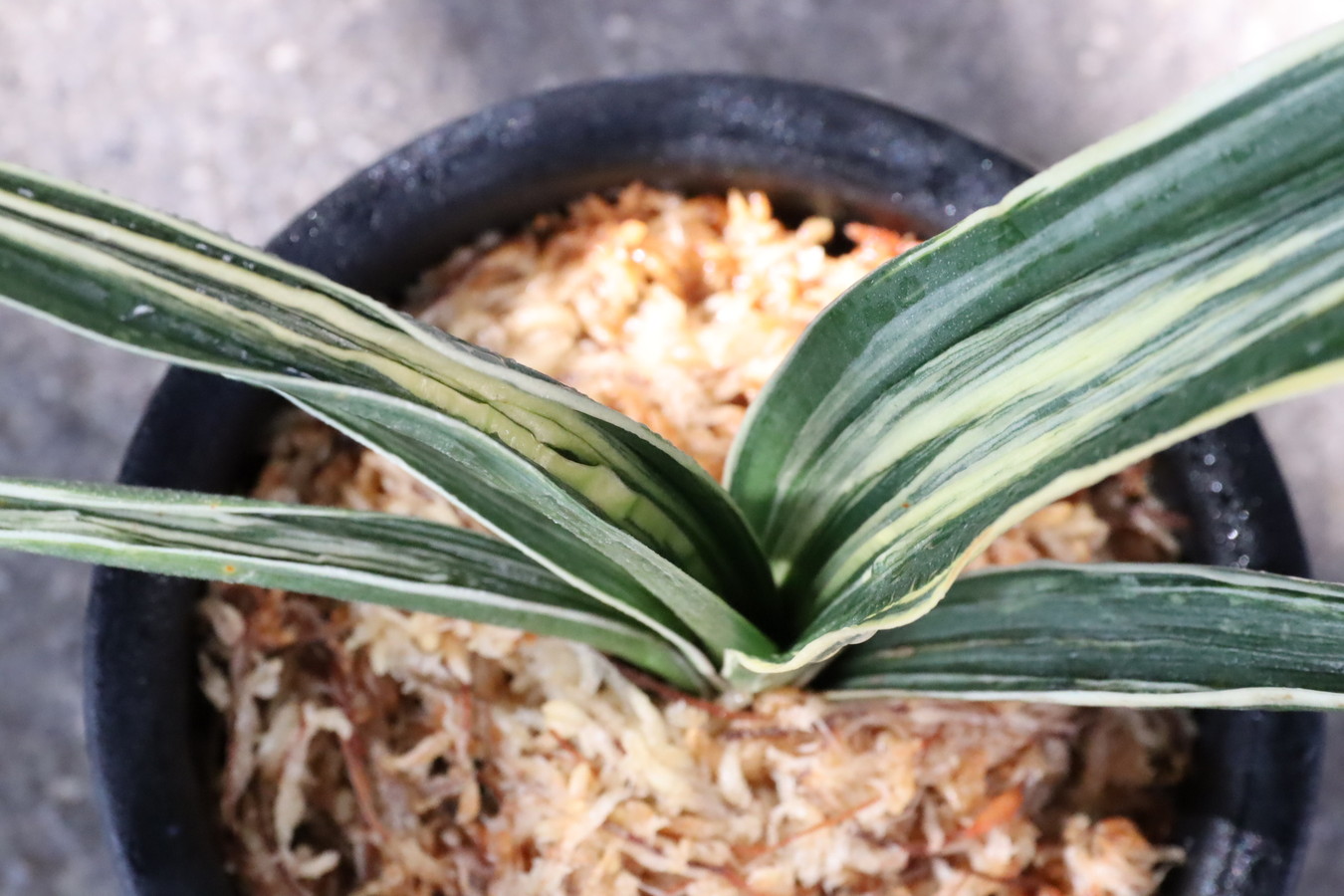多くの万年青は1品種につき、20~50年といった長い年月をかけて品種交配で作られ、先人が大事に大事に増やして一つの品種として確立していきます。そのため品種としてはどれも素晴らしいものばかり。ですが、図物はそれら品種の中でも一段格上とされています。なぜなら、図物だけは人の手では絶対にできないから。多くの品種は類似品を作ろうと思えば、時間はかかりますが近いものはできてしまいます。ですが図物だけは時間がどれだけあろうともできず、図が突然変異で入る、という奇跡が起きないとできない。品種として非常に限られています。この輪波獅子や、根岸松の図、お多福の図、地球宝、残雪などどれも萬年青界の顔ともいえる品種です。また、初心者の方にも図物だけは特徴がはっきりしているので、偽物に捕まるということがありません。今のように太陽や金龍閣、四君子や海竜獅子など10-30年前とおもうと10~500倍の値段になったものがあります。それらはどうしても偽物がでてきて、きちんとした所で買わないと非常に高い勉強代を払うことになります。図物だけは絶対に安心なので、相場も下がってきたな、と思うと日本で、今ですと世界で待ち構えている人がいて、買い占めや相場を上げる買い方をして必ず相場も上がっていきます。