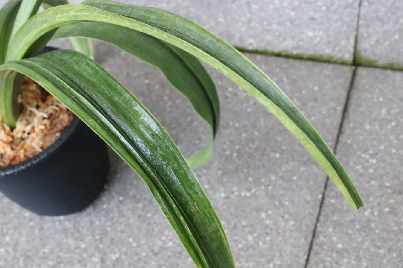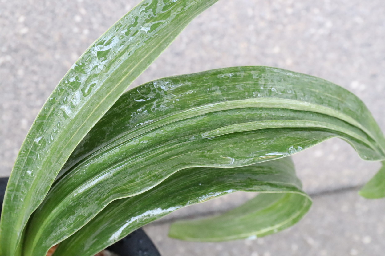 万年青は一つ殖えるのに5年とも10年ともいわれる、寿命の非常に長い植物です。一つ一つの苗でも1-3年ほどかけて育て上げています。その間には台風、猛暑、寒さ、自然の虫など様々な障害をへて育っていくので、完全に無傷の万年青はありません。人以上の寿命のある万年青。風邪を一度も引いたことがない、かすり傷も一度もない人がいないように、ちょっとした傷もある意味、懸命に生きている証。そんな風に考えていただけると有難いです。