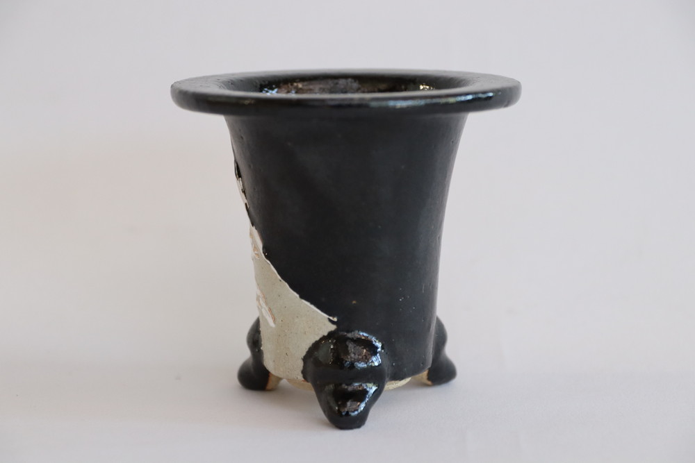 楽焼は天正年間(約400年前)に始まる日本独特の焼き物です。楽焼は《急熱急冷》という特殊な焼成方法をとります。急熱急冷だから、鉢に細かな 微細な穴ができ、通気を良くしています。楽鉢の樂しみ