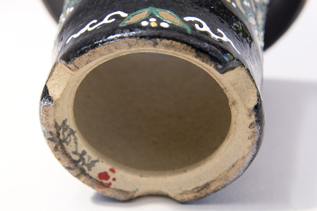 梅花作 セッコク用の形です、おもとを植えても面白い。セッコク用に鉢底の穴を広く作った鉢で特別な製法につき鉢底の土目の色が本体と異なることがあります。楽焼は天正年間(約400年前)に始まる日本独特の焼き物です。楽焼は《急熱急冷》という特殊な焼成方法をとります。急熱急冷だから、鉢に細かな 微細な穴ができ、通気を良くしています。楽鉢の樂しみ