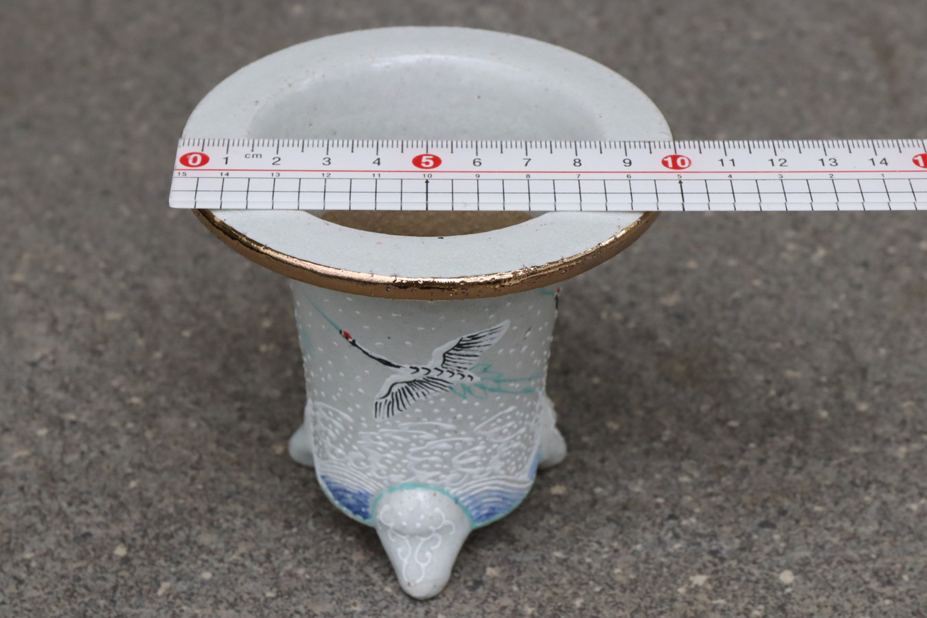 2204,白地青海 鶴楽鉢 外径約10.2㎝ 【鶴】は、吉祥と長寿の象徴