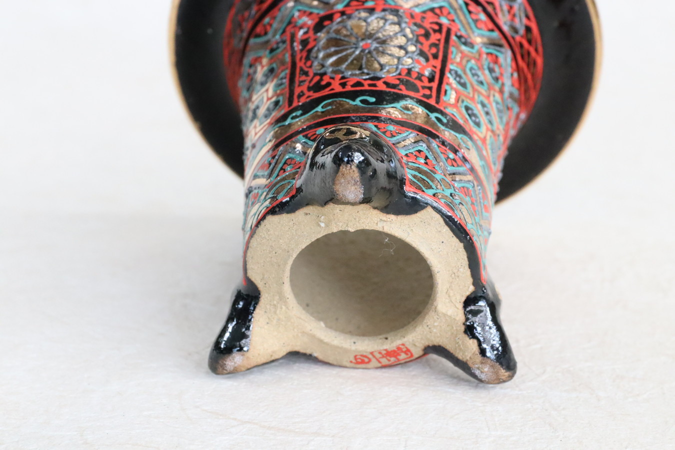 2043,五龍華 菊亀甲吉祥楽鉢 外径約9.4cm 華・加茂黒サイン【朱新作大特価】