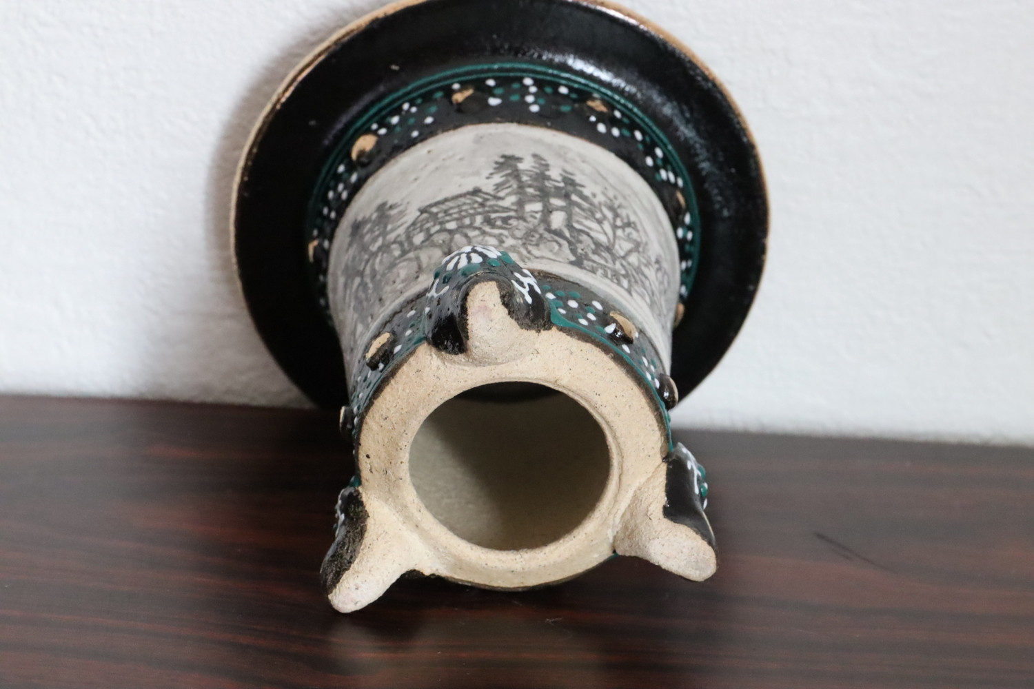 2057,太鼓胴墨絵山水 外径約10.6cm 喜山サイン