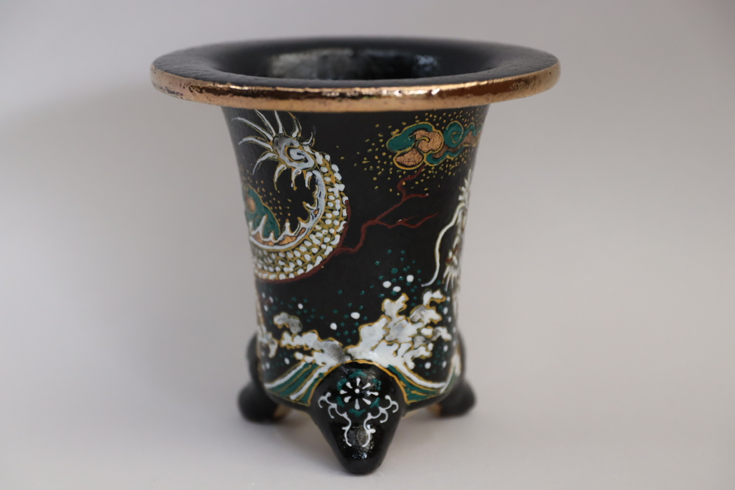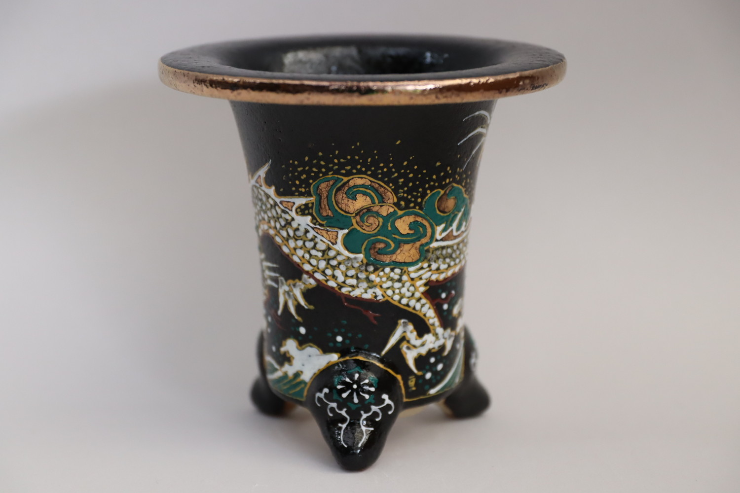 亘作 万年青鉢 オモト鉢 楽焼は天正年間(約400年前)に始まる日本独特の焼き物です。 楽焼は《急熱急冷》という特殊な焼成方法をとります。 急熱急冷だから、鉢に細かな 微細な穴ができ、通気を良くしています。 おもと鉢 楽鉢 楽鉢の樂しみ