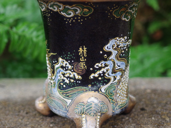 2188, 海龍 龍山画 サインあり 外形約10.8cm 中古鉢