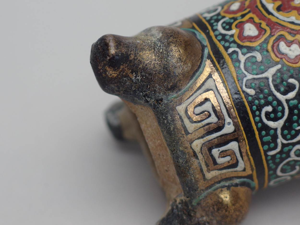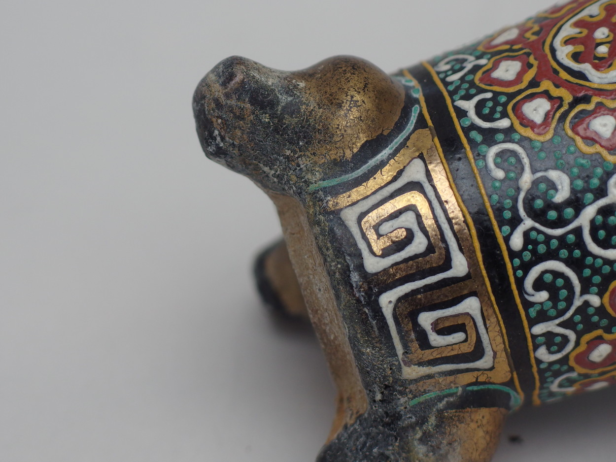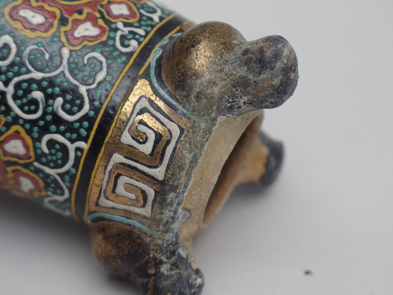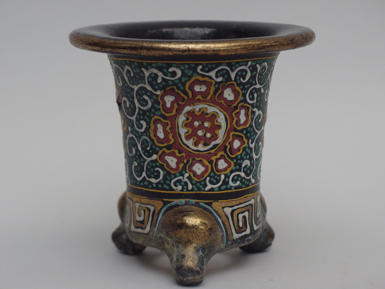 2063, 古鉢 華唐草 萬年青楽鉢 外径約8.9cm 直し 中古