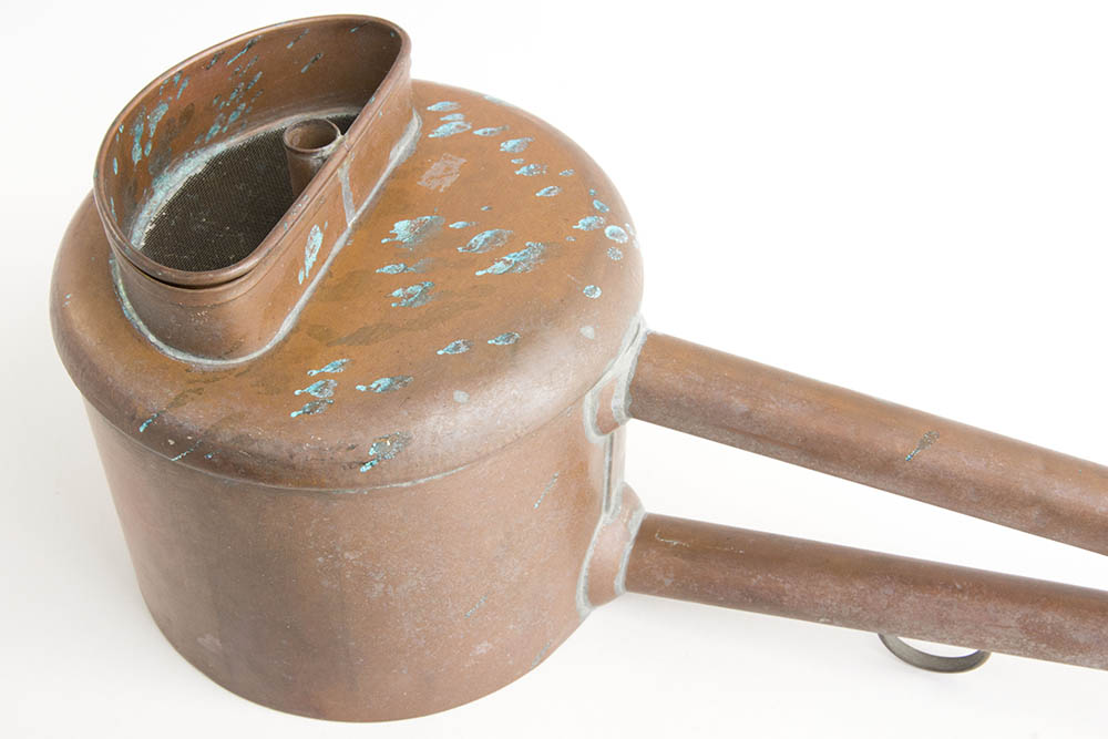 昔ながらの製法の銅製じょうろで空気穴等現在では省略されがちなところまで丁寧に作りこまれています。