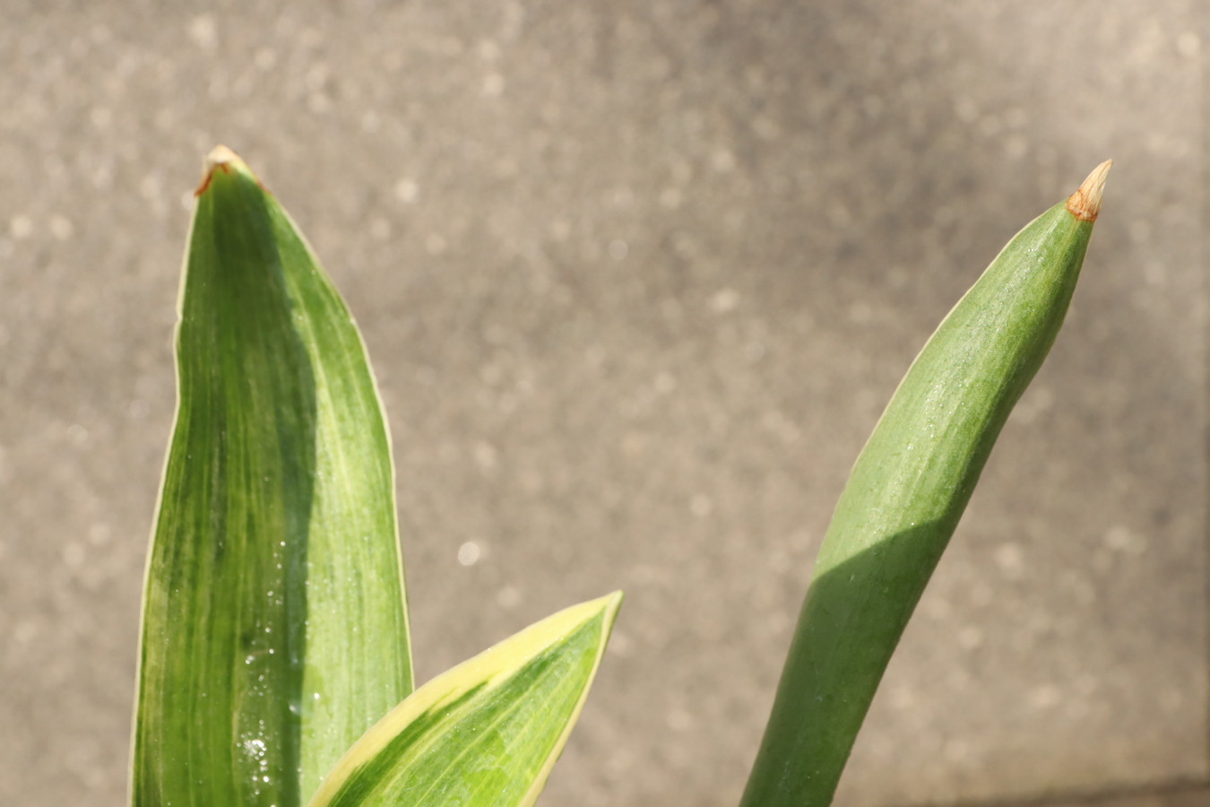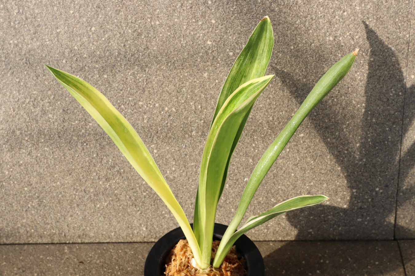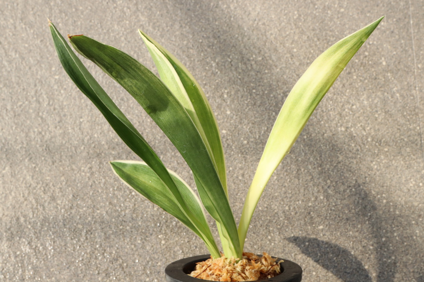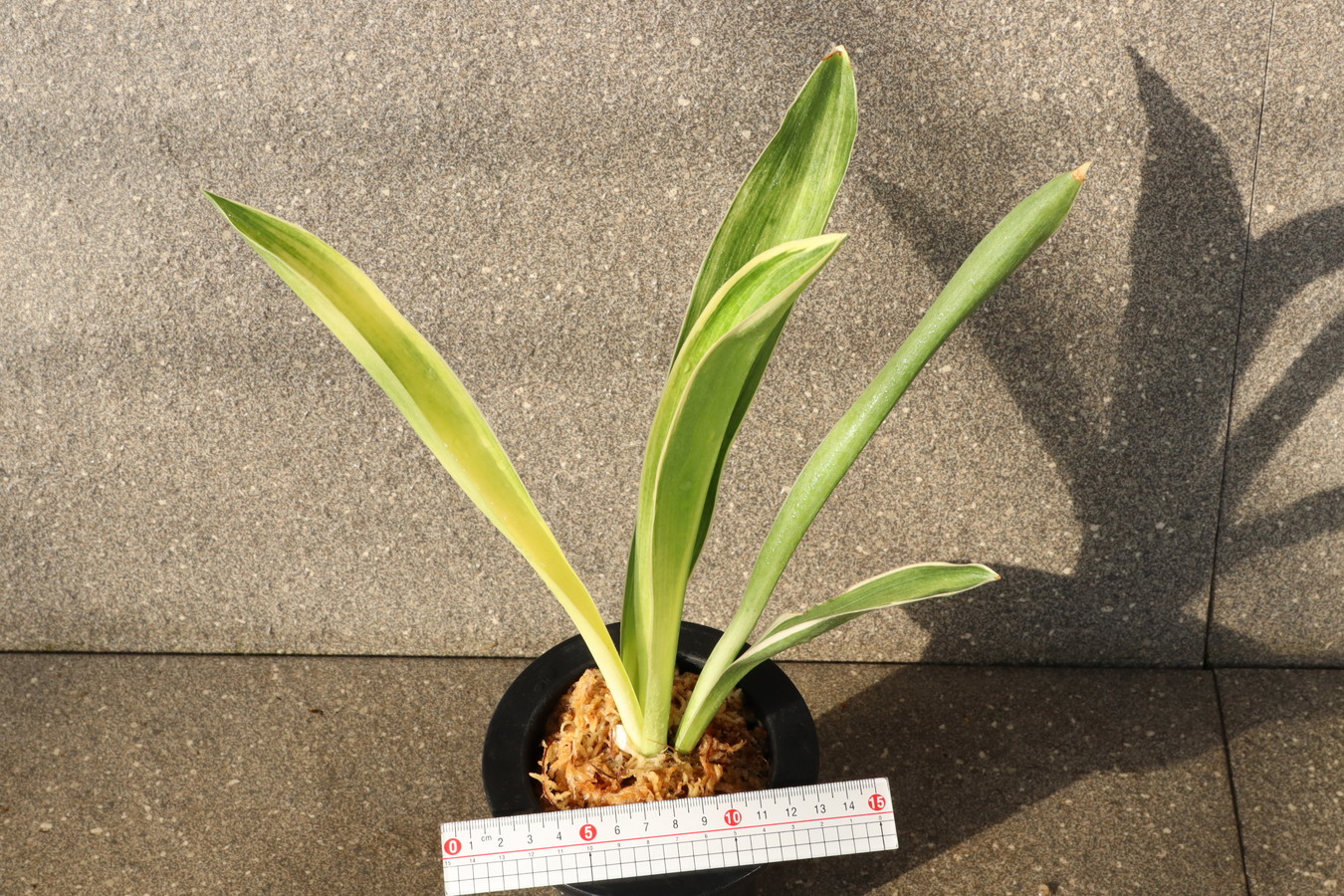 曙系統では珍しい、葉に白黄色の大覆輪を現す