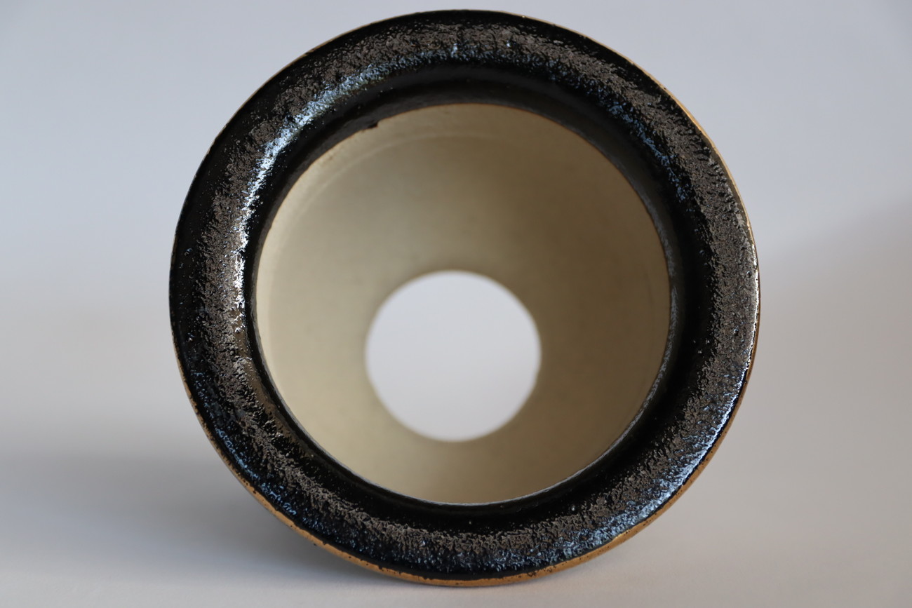 1点限り 万年青鉢楽焼は天正年間(約400年前)に始まる日本独特の焼き物です。楽焼は《急熱急冷》という特殊な焼成方法をとります。急熱急冷だから、鉢に細かな 微細な穴ができ、通気を良くしています。おもと鉢 七々子鉢