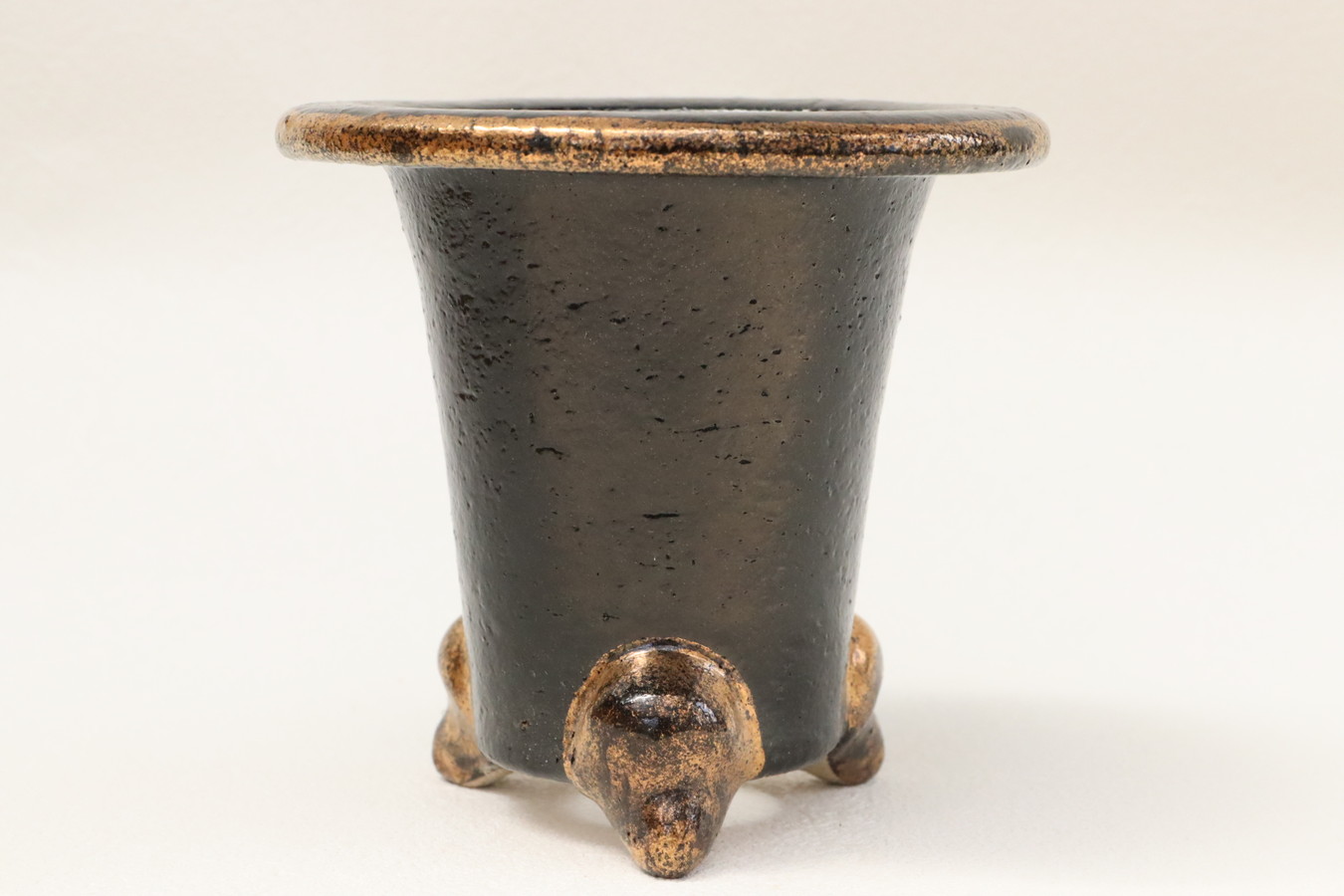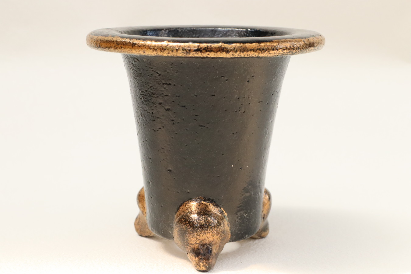 3036,縁足金 縁金鉢 萬年青鉢 外径約11.5cm 中古?新古?流れ?古い?